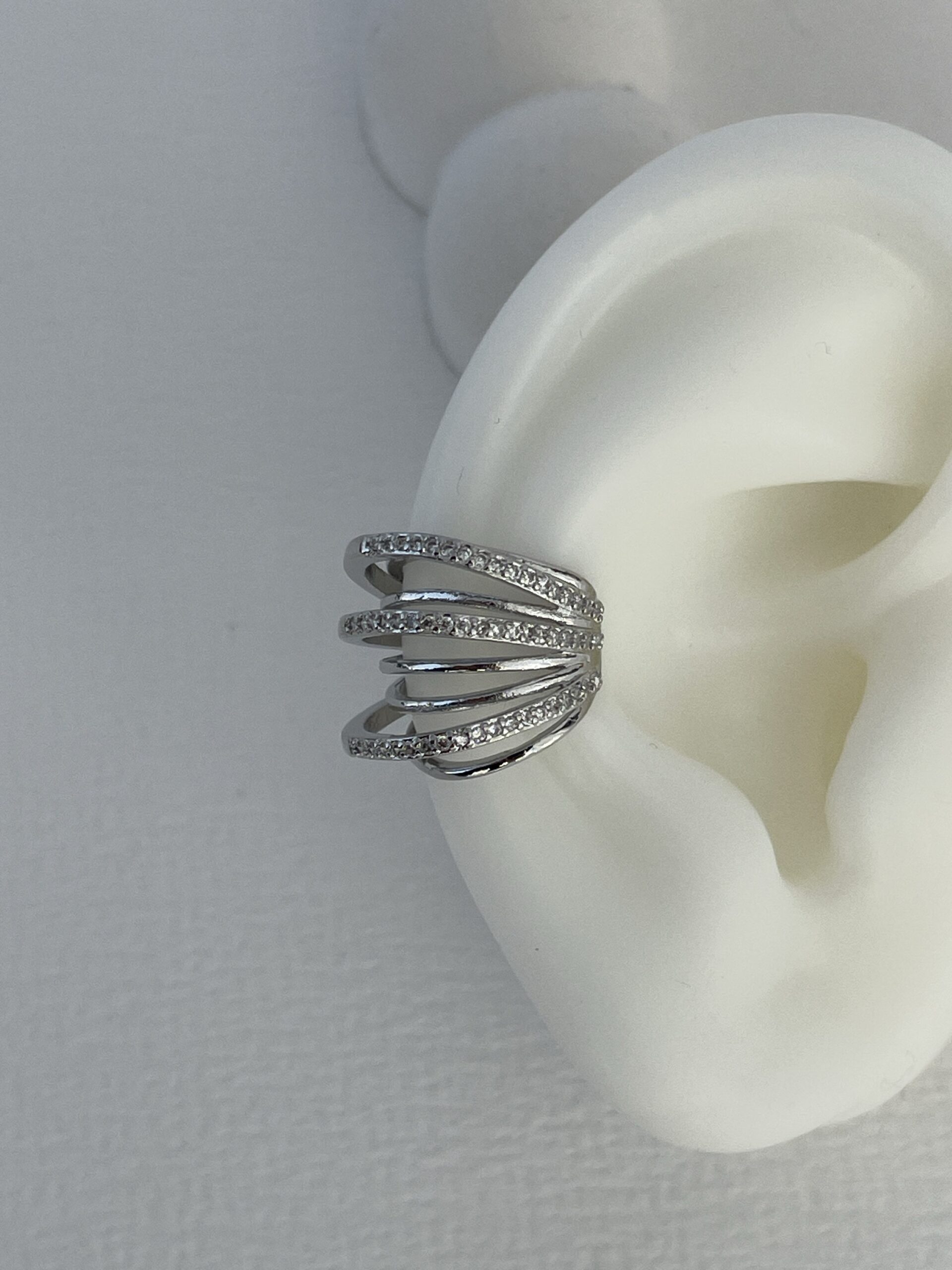 Özel Seri Üçlü Zirkon Taş Detay Sıra Gümüş Earcuff