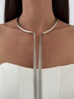 Özel Seri Uzun Zincir Tasarım Gümüş Choker Kolye