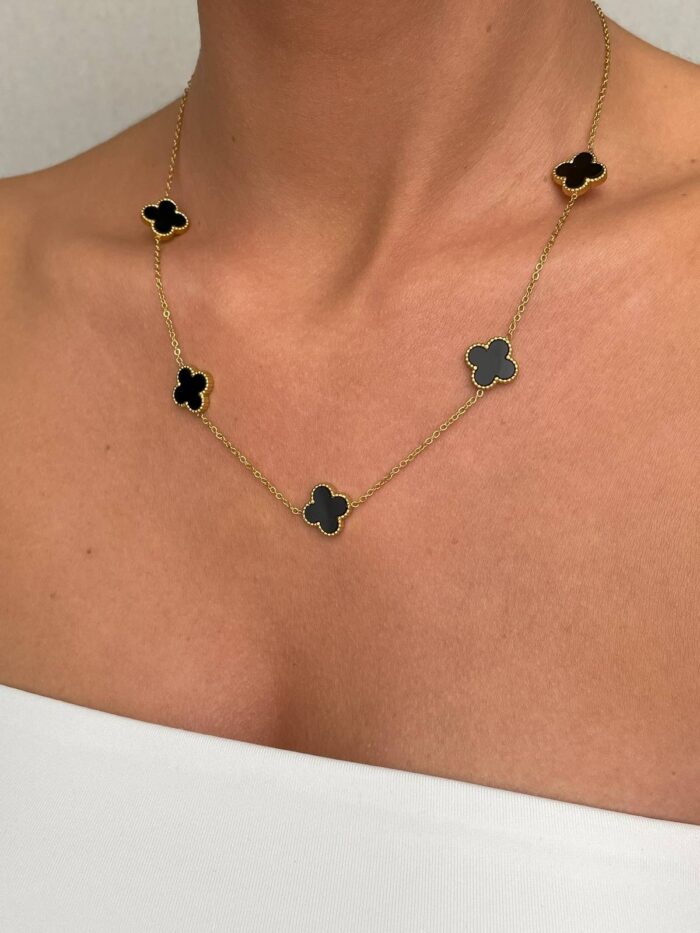 Çelik Beşli Yonca Tasarım Gold Siyah Kolye