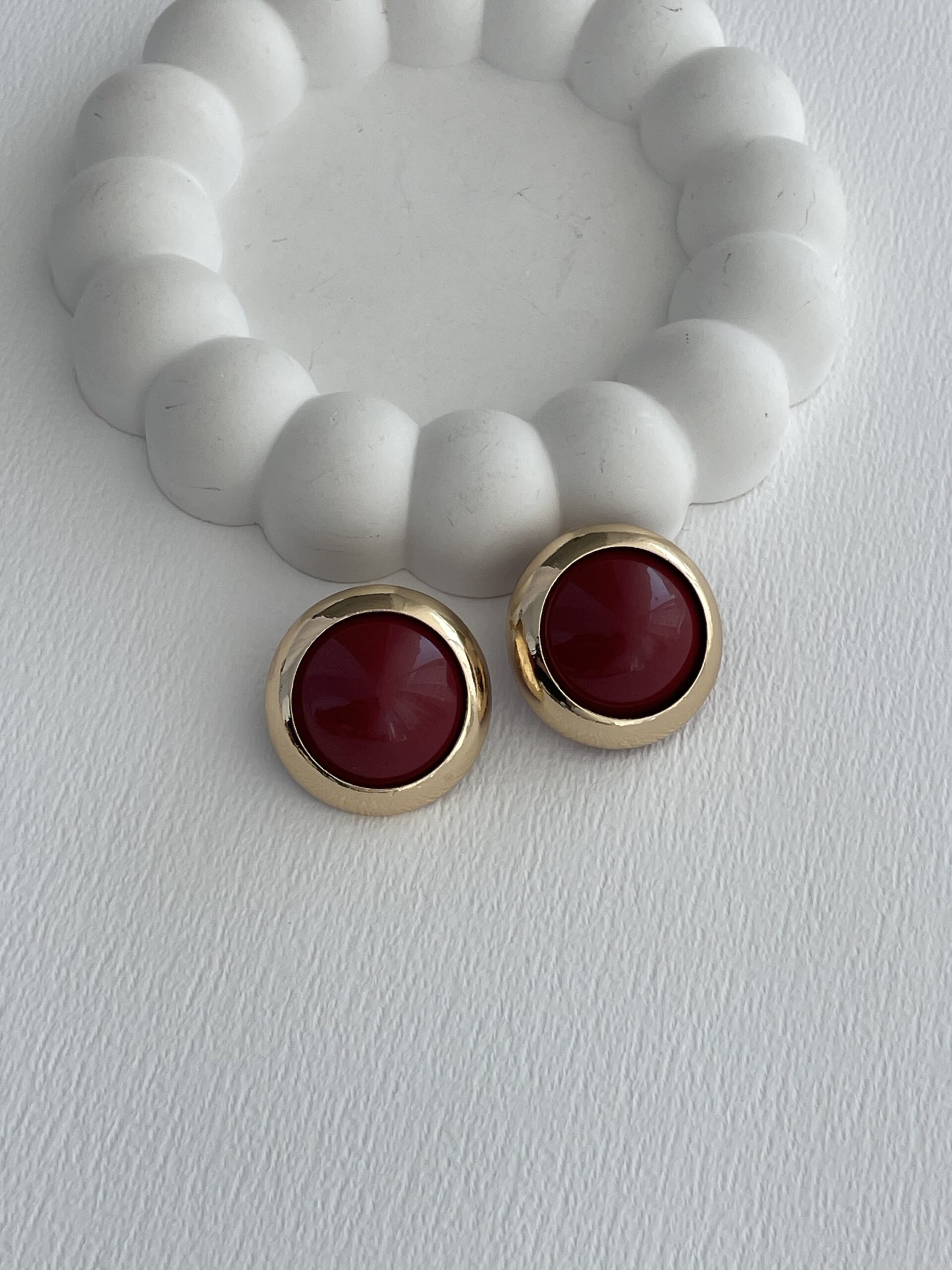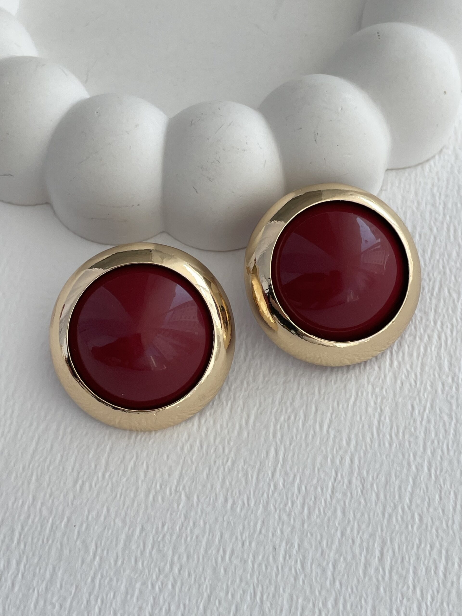 Özel Seri Vintage Bordo Yuvarlak Gold Küpe