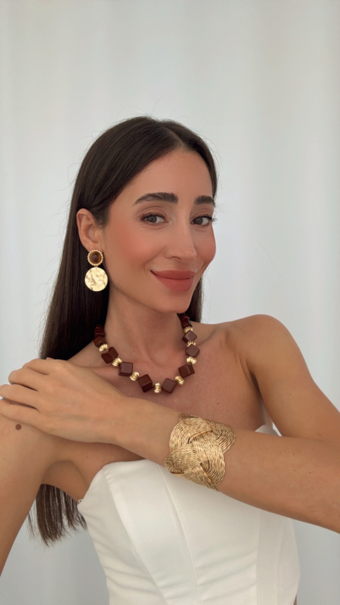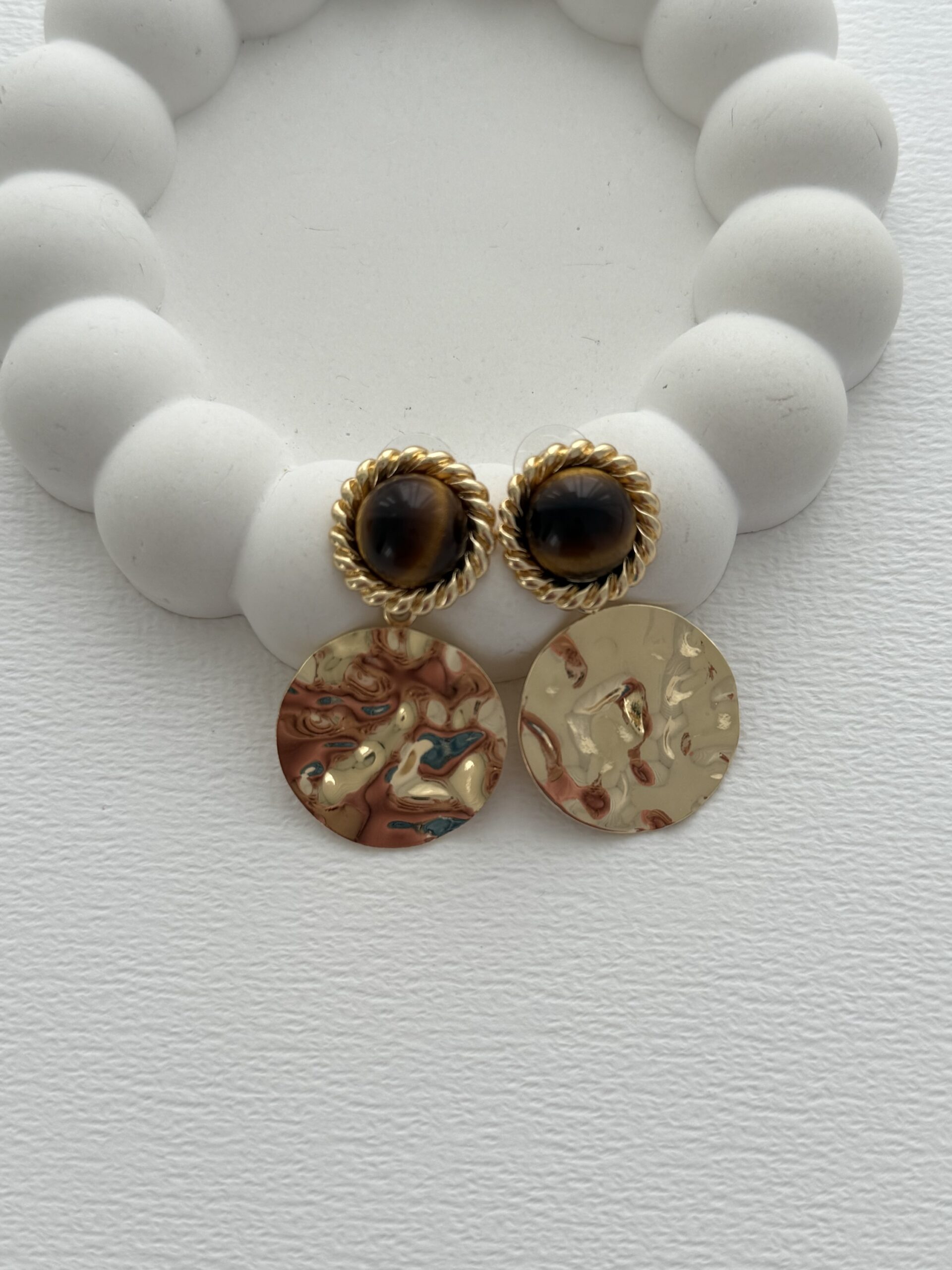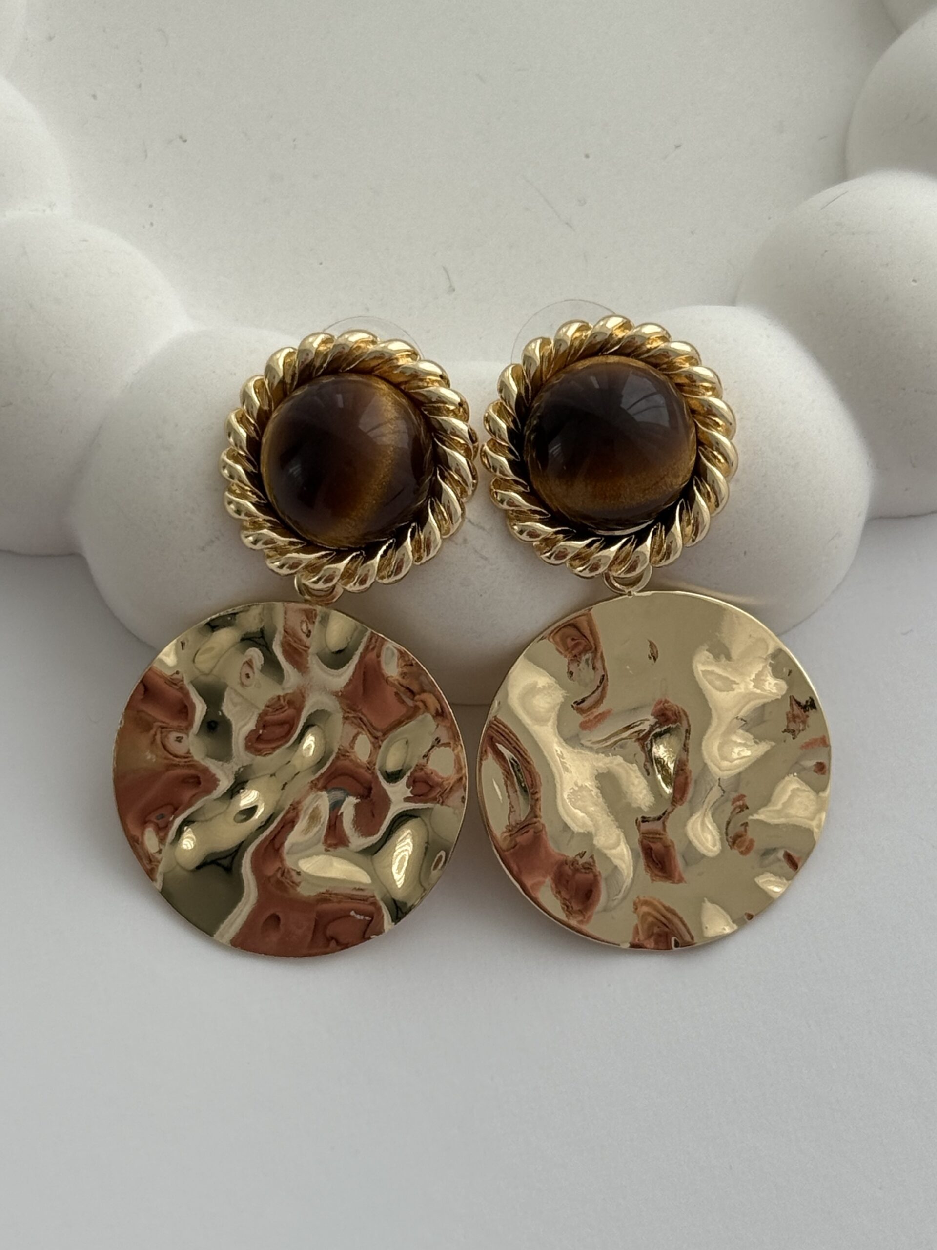Özel Seri Vintage Kahverengi Mineli Gold Küpe