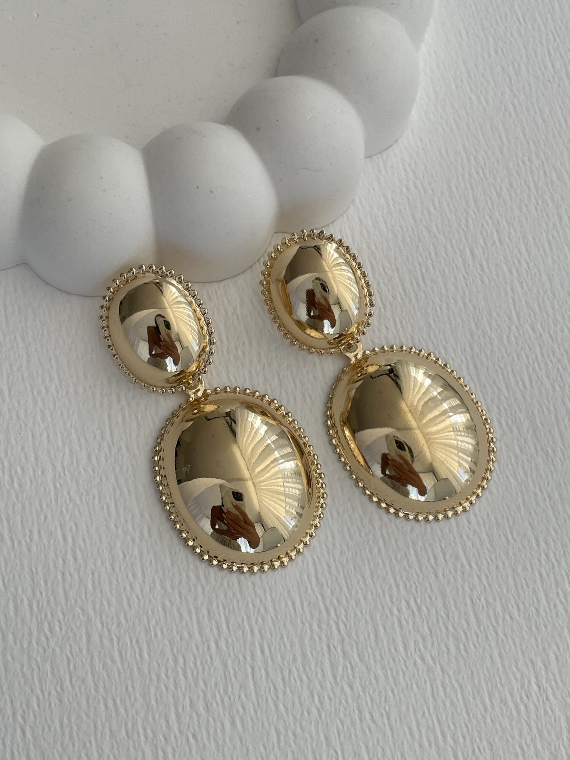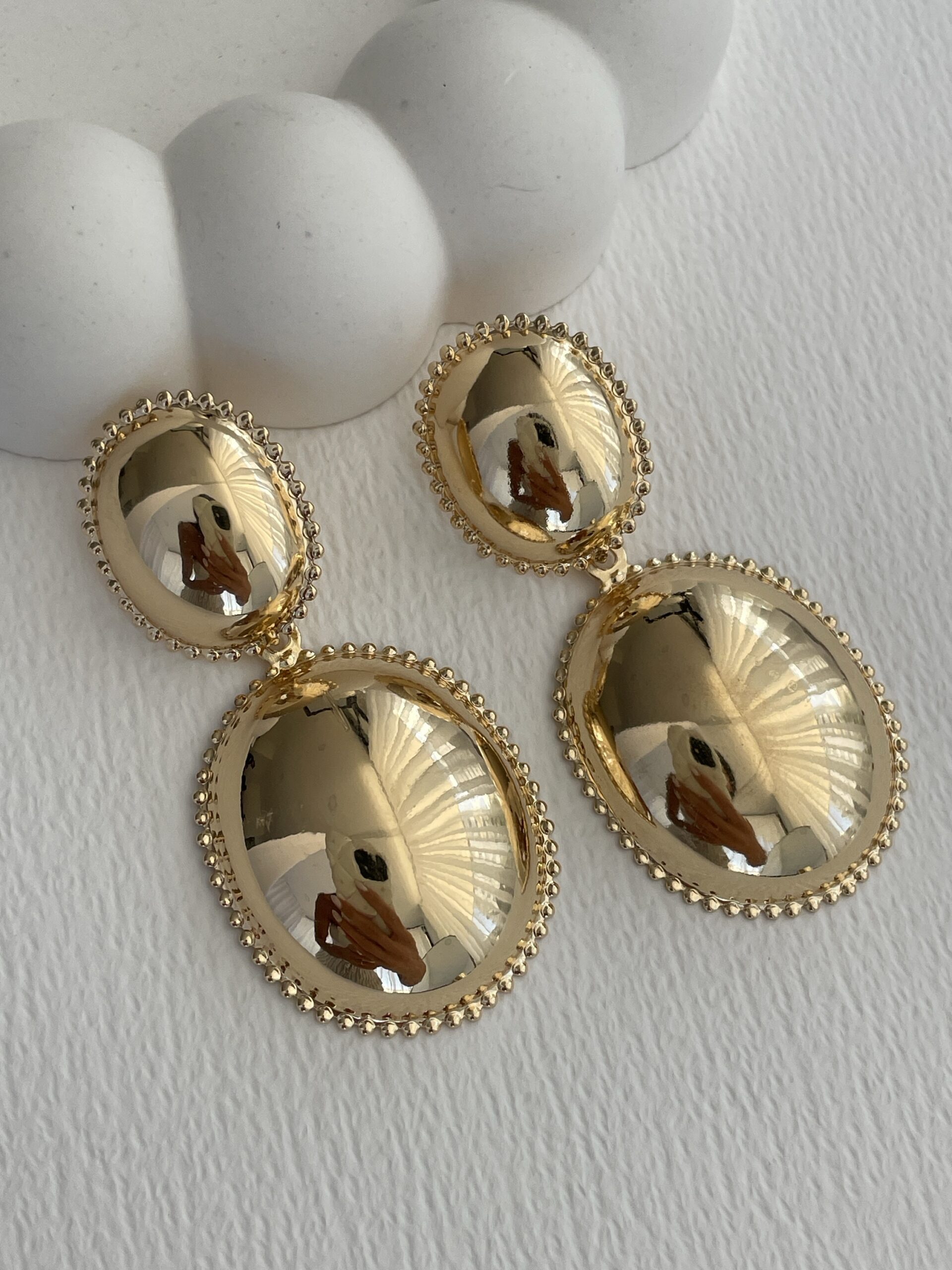 Özel Seri Vintage Tasarım Büyük Oval Gold Küpe