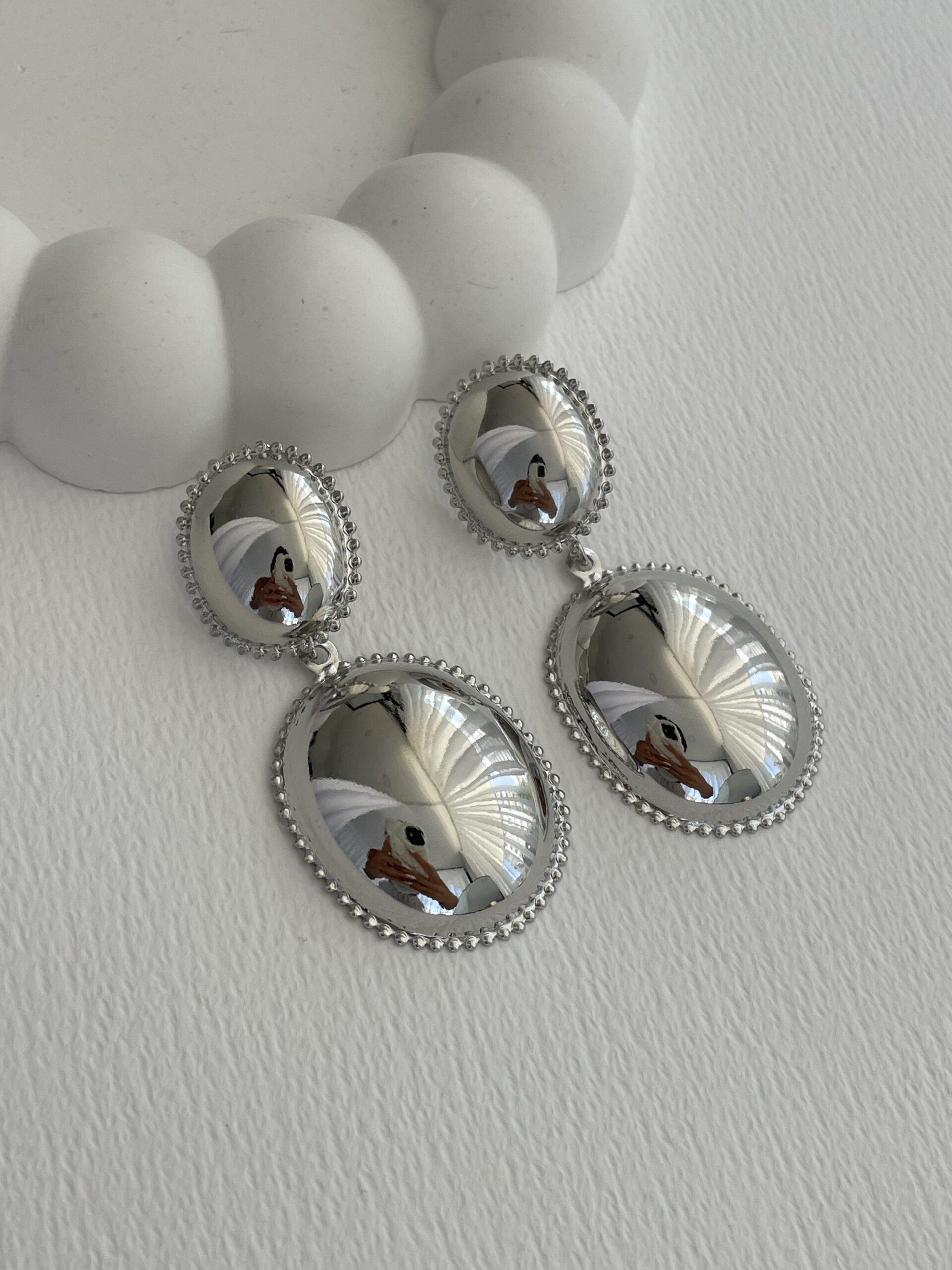 Özel Seri Vintage Tasarım Büyük Oval Gümüş Küpe