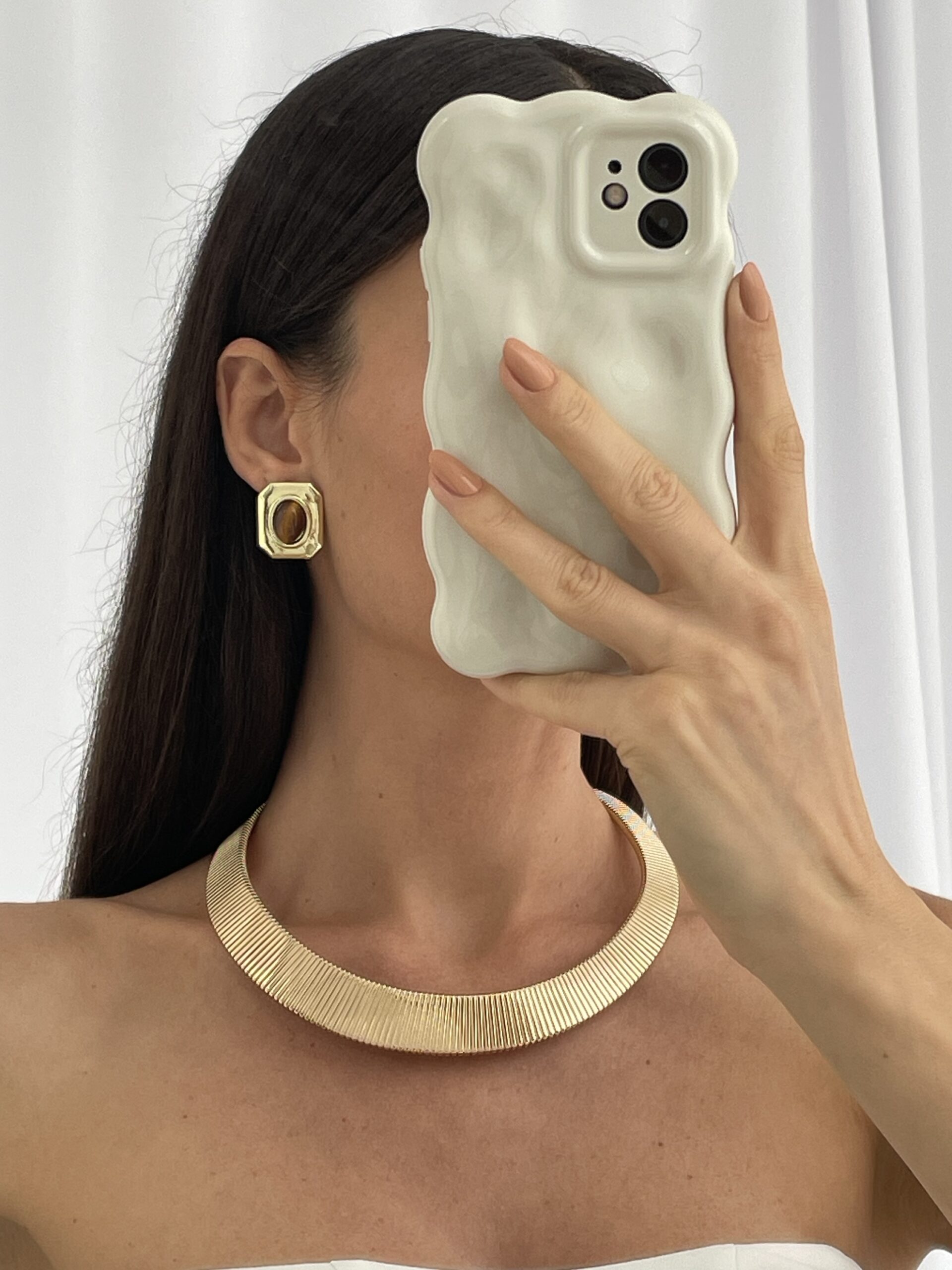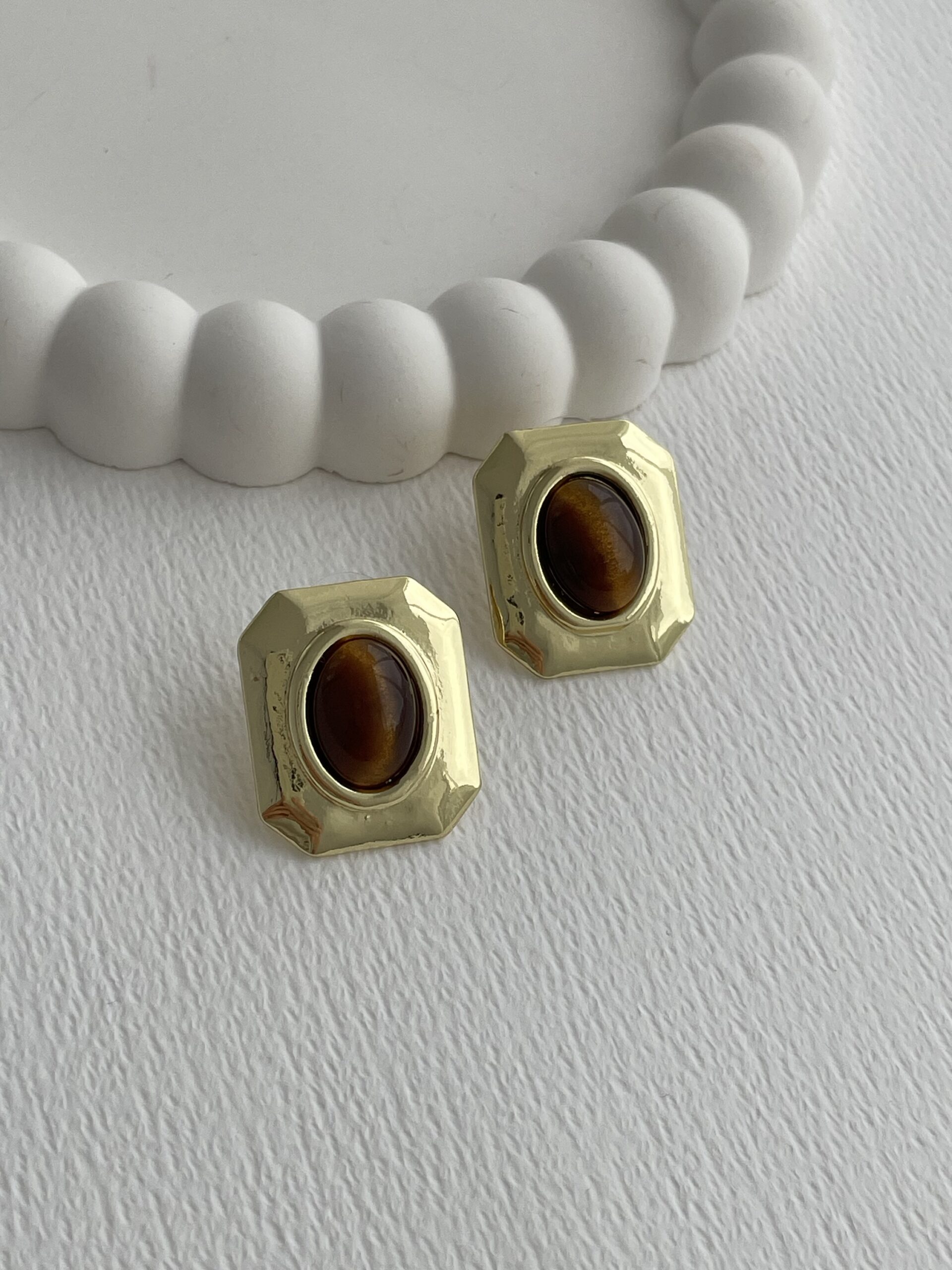 Özel Seri Vintage Tasarım Kahverengi Kaplan Gözü Gold Küpe
