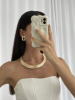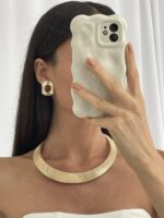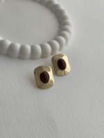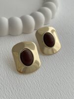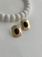 Özel Seri Vintage Tasarım Kahverengi Mineli Gold Küpe