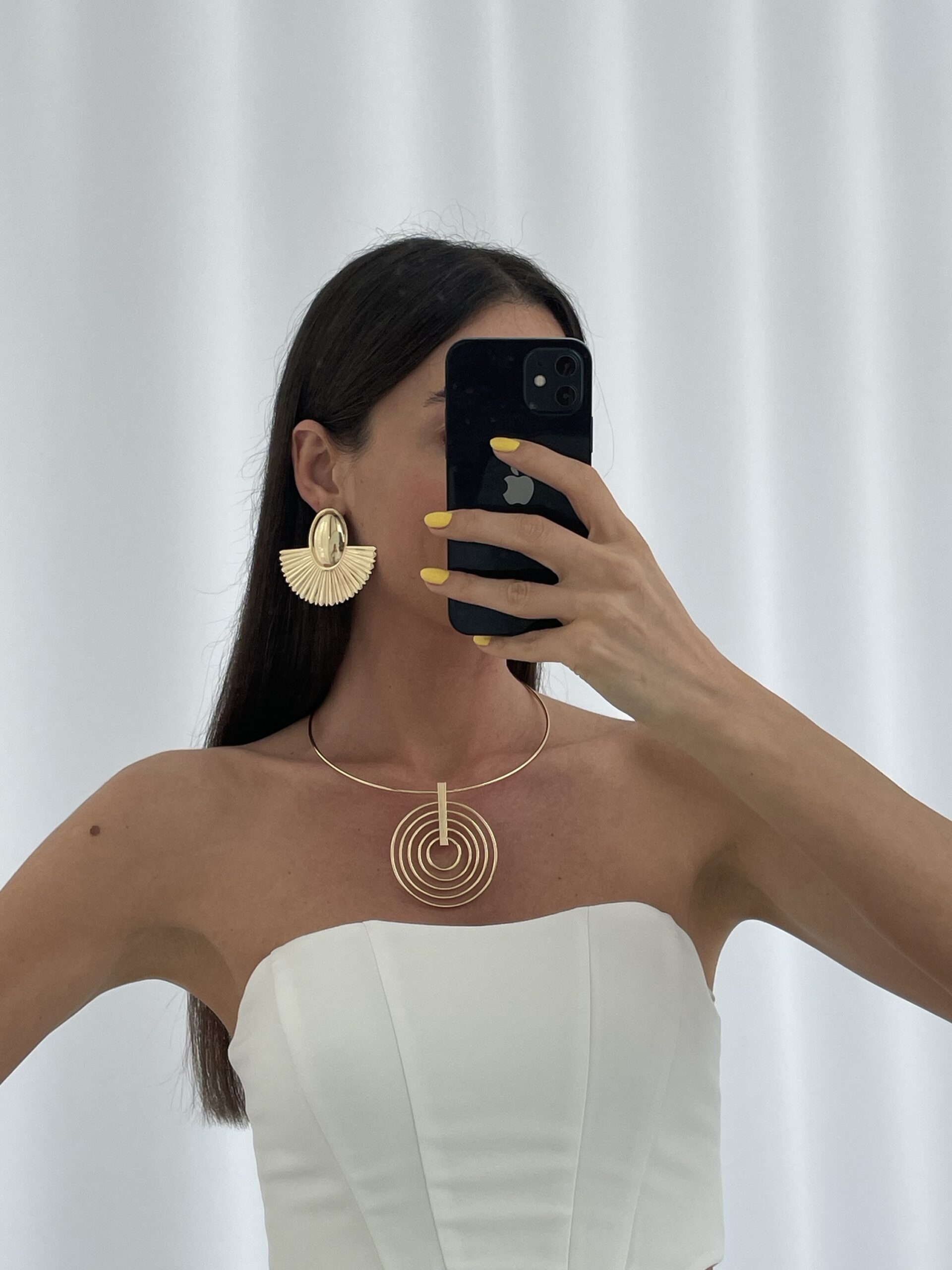 Özel Seri Vintage Yelpaze Tasarım Gold Küpe