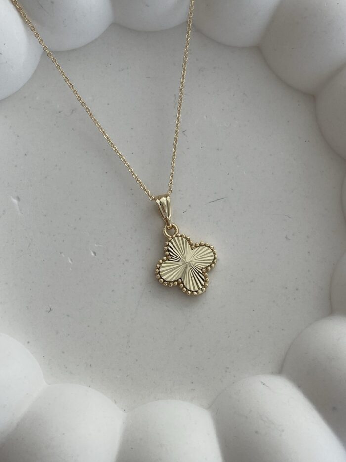 Özel Seri Tekli Yonca Tasarım Gold Kolye