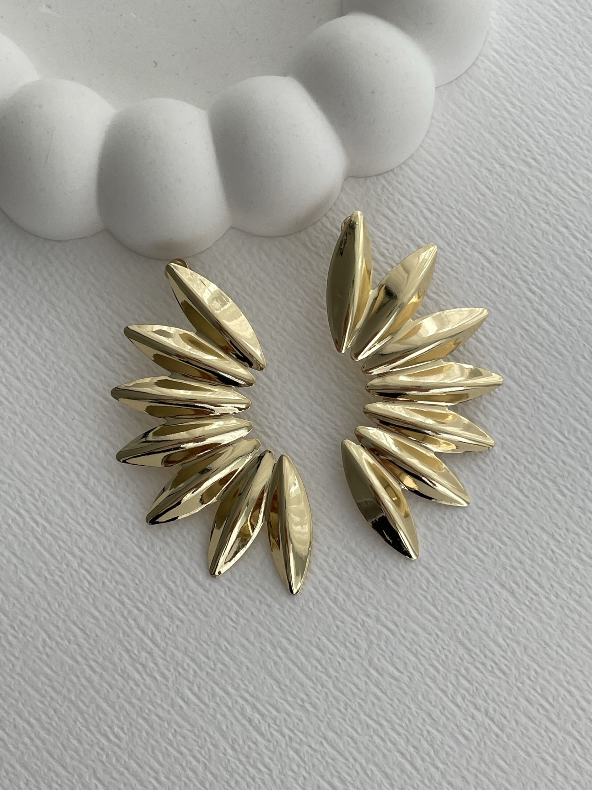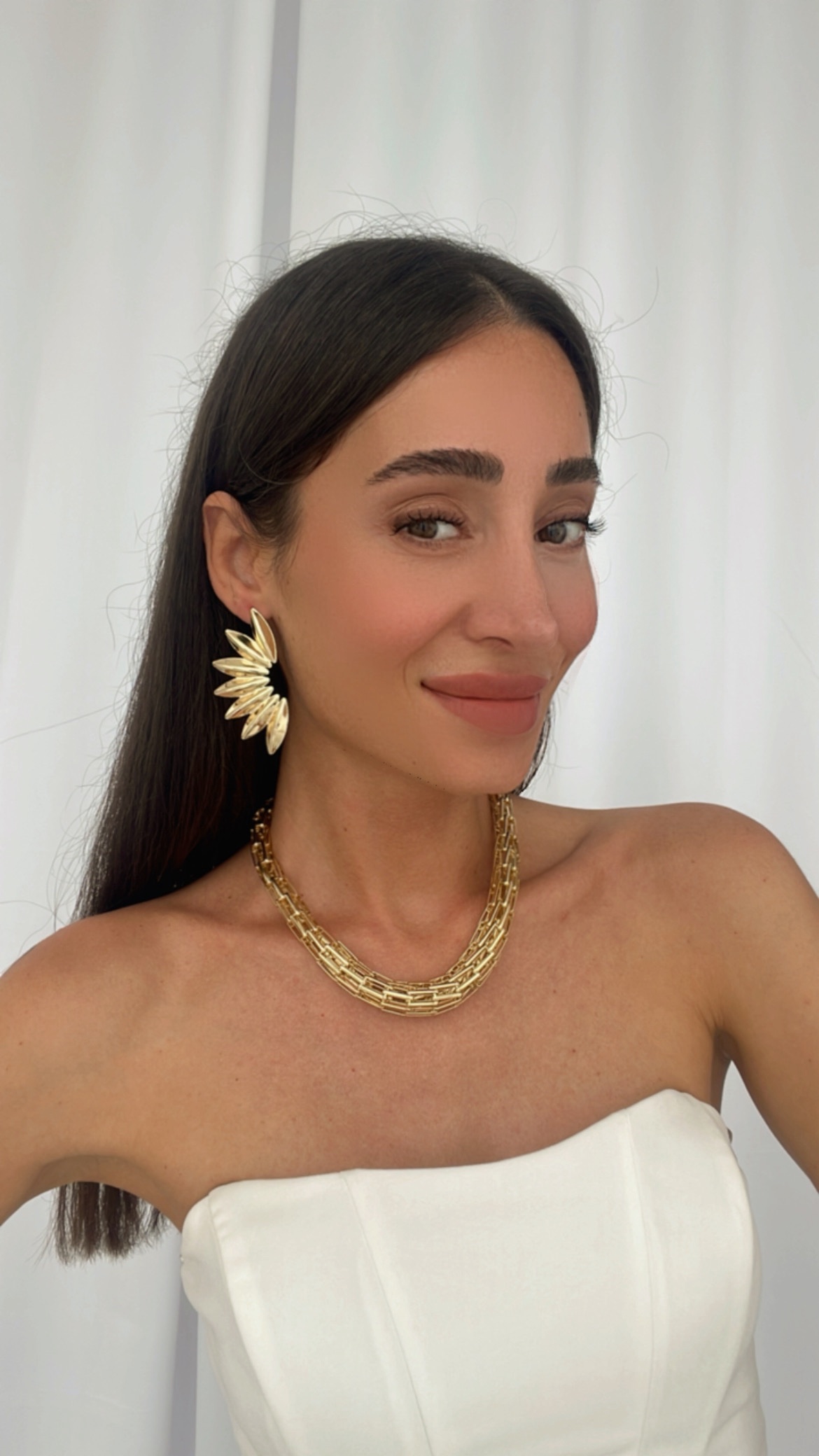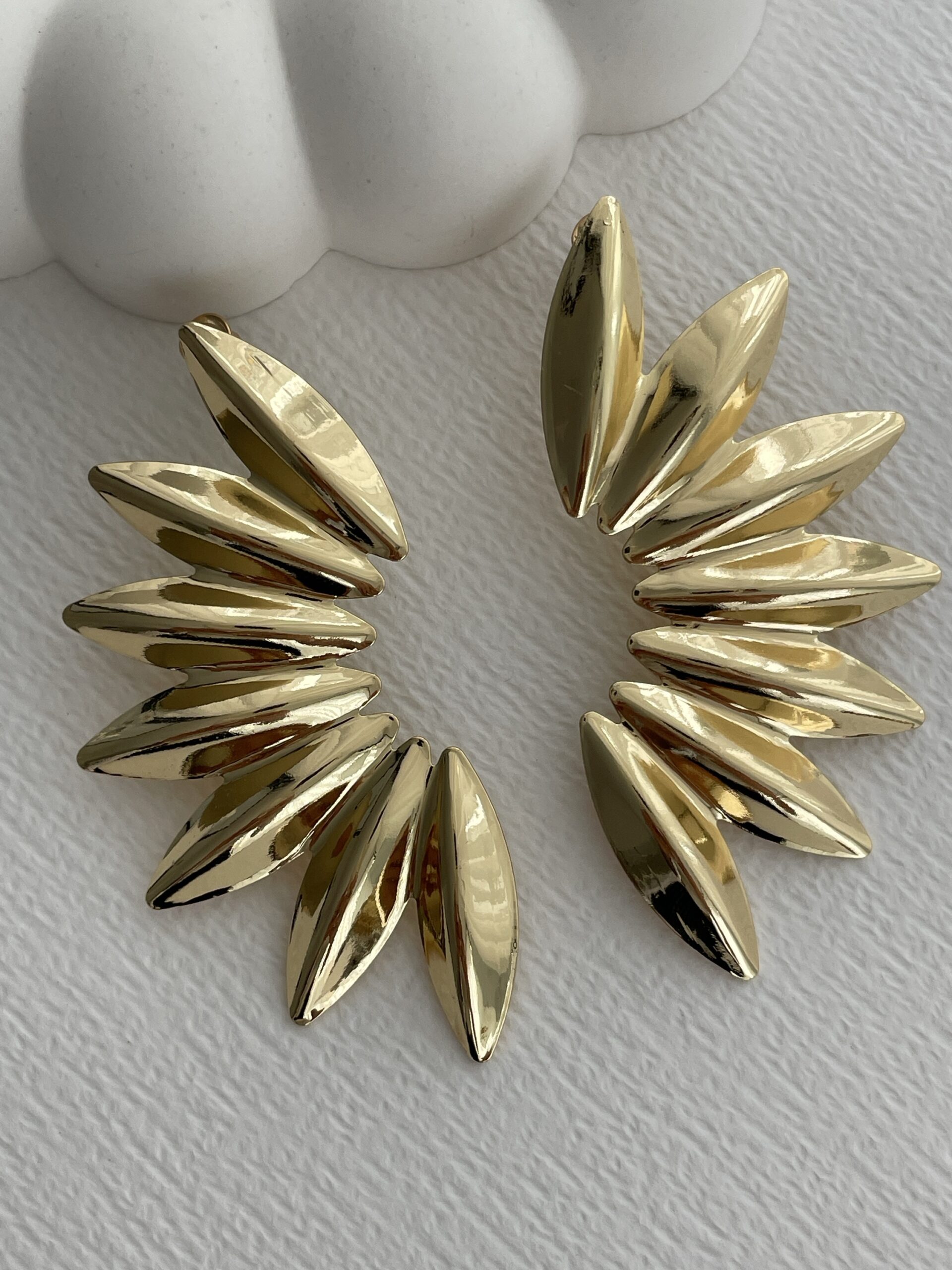 Özel Seri Yaprak Desen Maksi Boy Gold Küpe