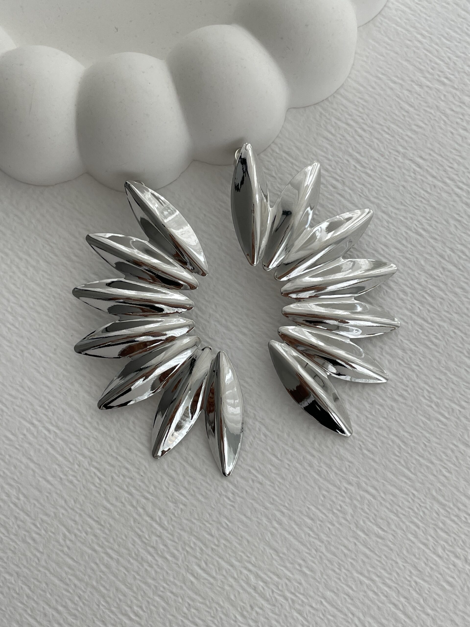 Özel Seri Yaprak Desen Maksi Boy Gümüş Küpe