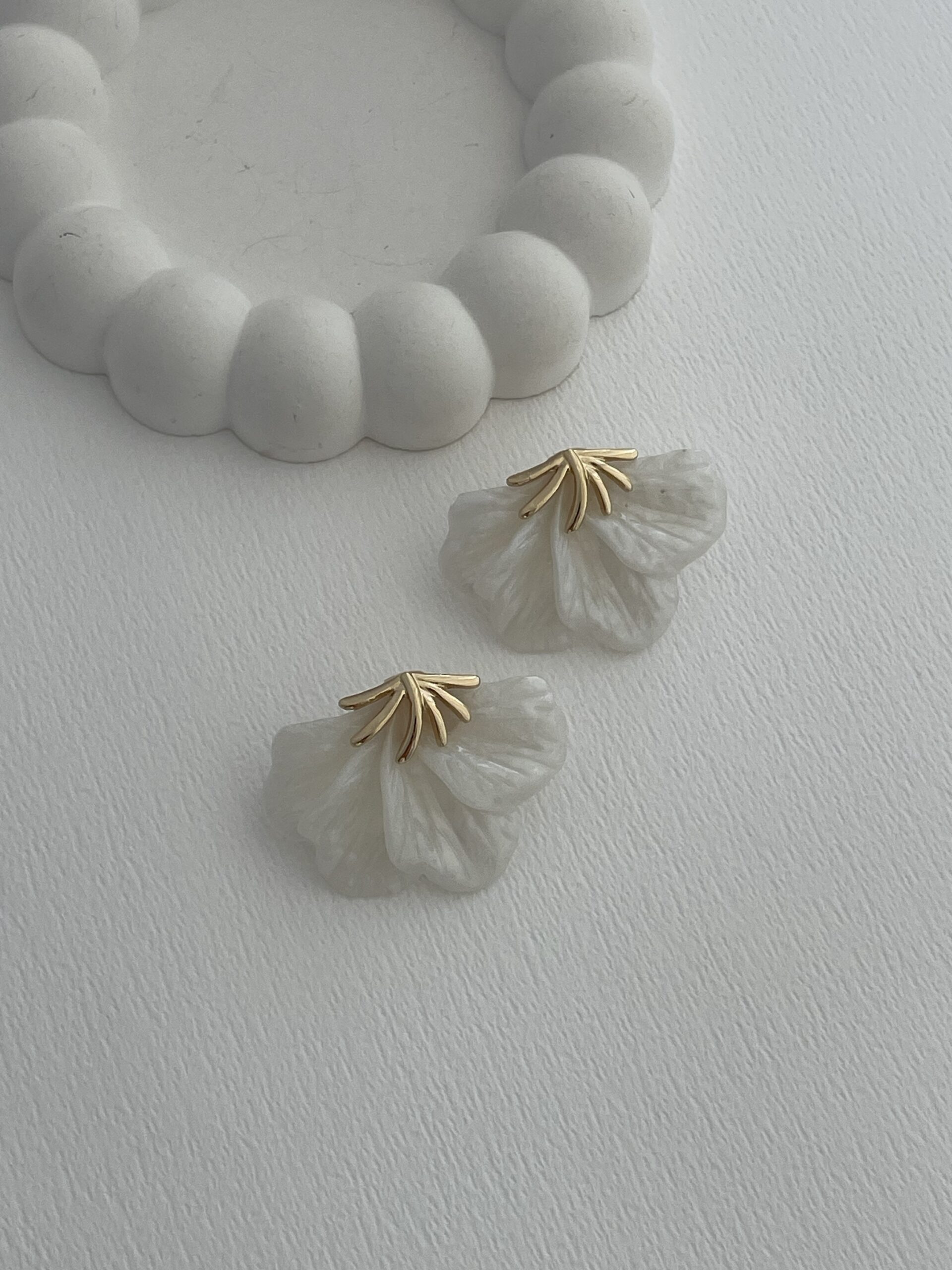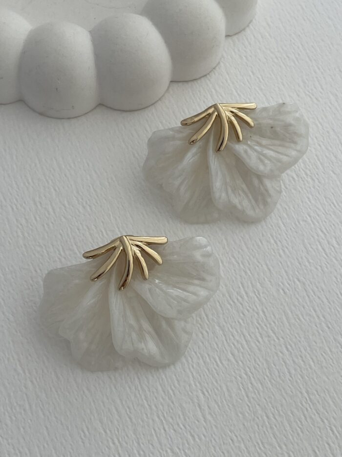 Özel Seri Yaprak Tasarım Beyaz Hawai Küpe