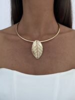 Özel Seri Yaprak Tasarım Gold Choker Kolye
