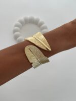 Özel Seri Yaprak Tasarım Gold Kelepçe Bileklik