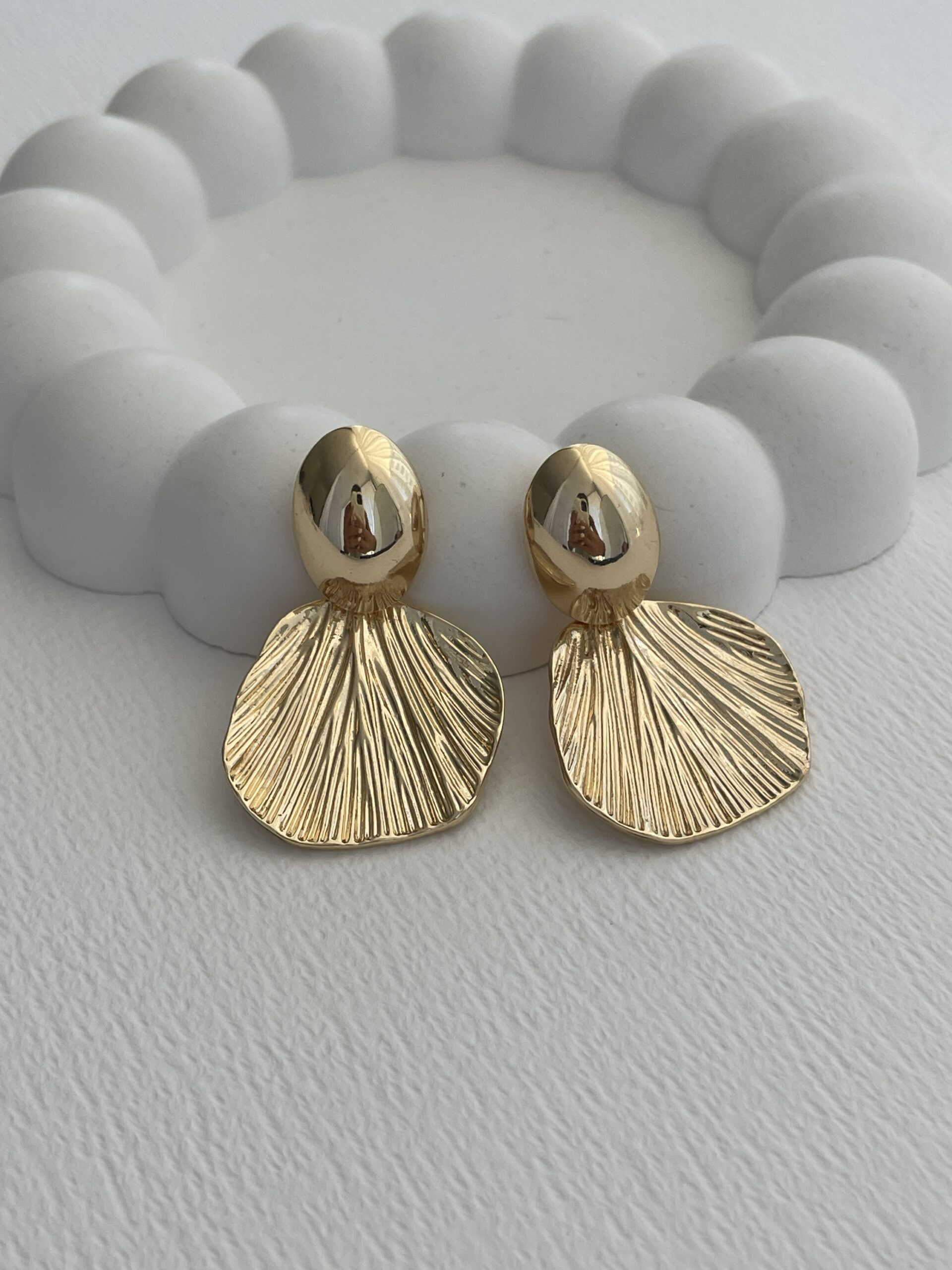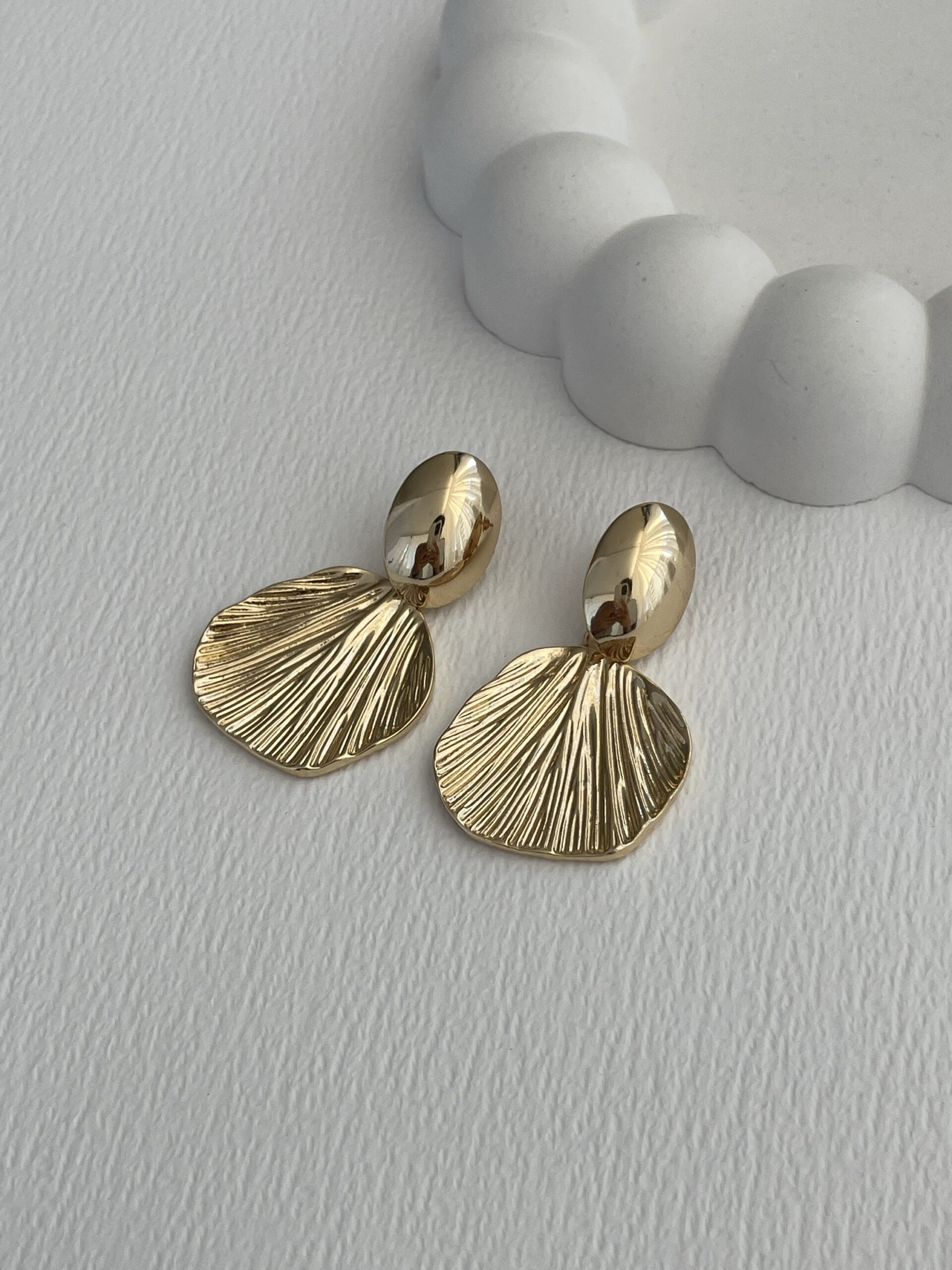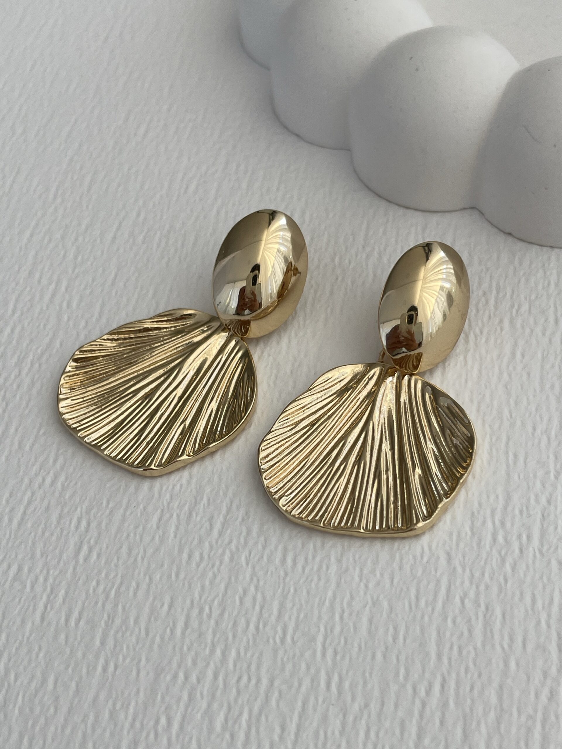 Özel Seri Yaprak Tasarım Gold Küpe