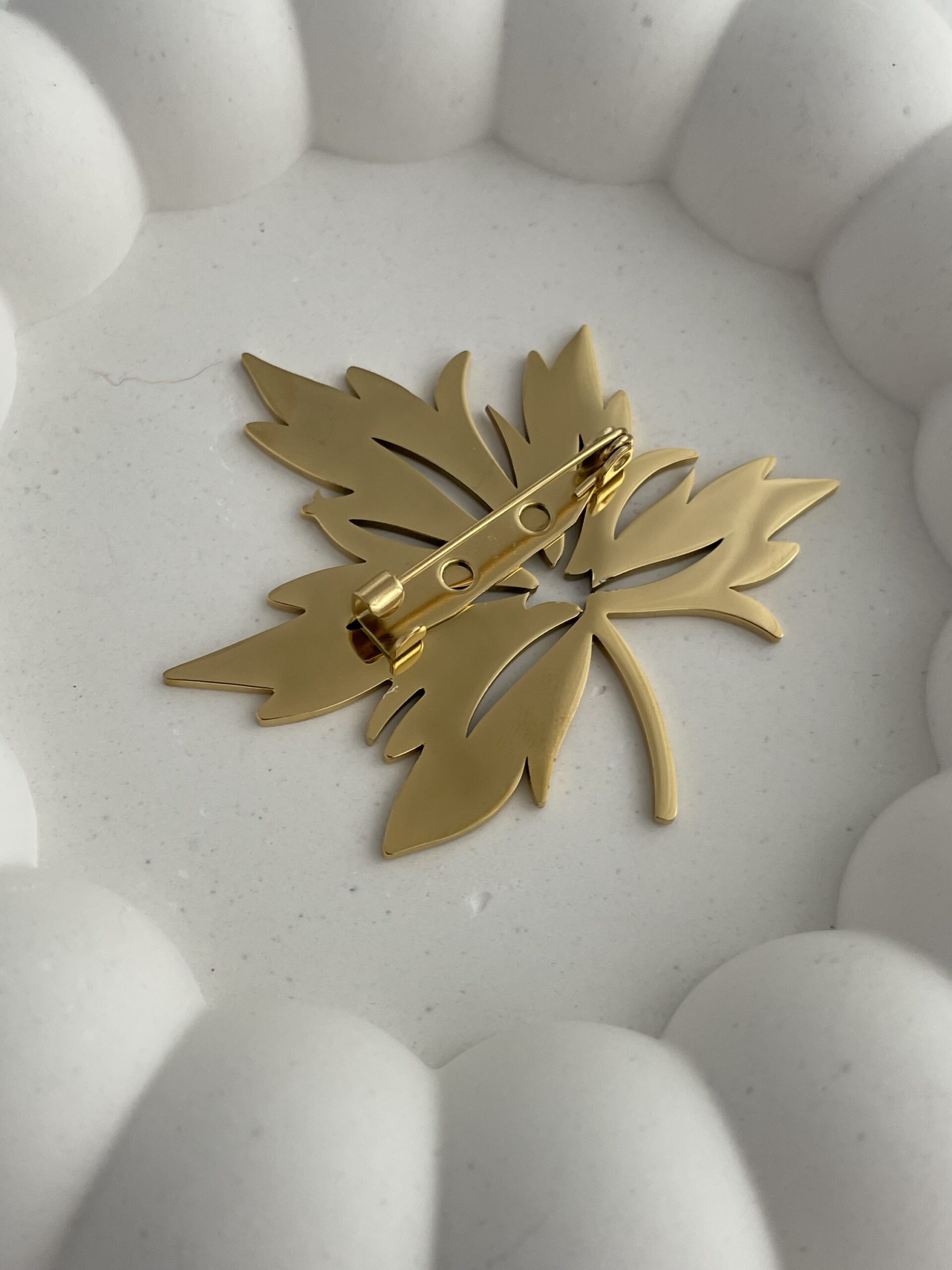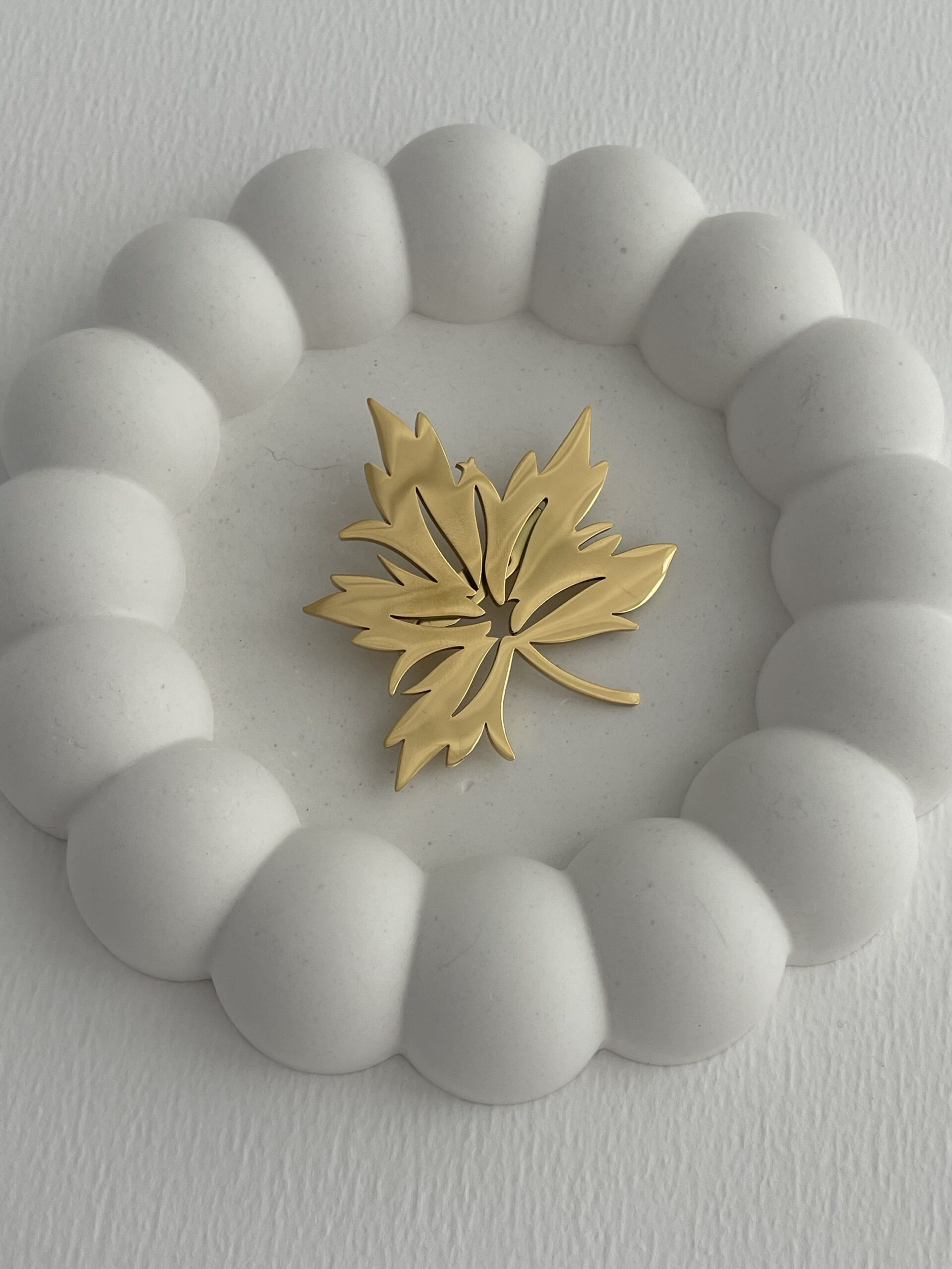 Özel Seri Yaprak Tasarım Gold Plaka Broş