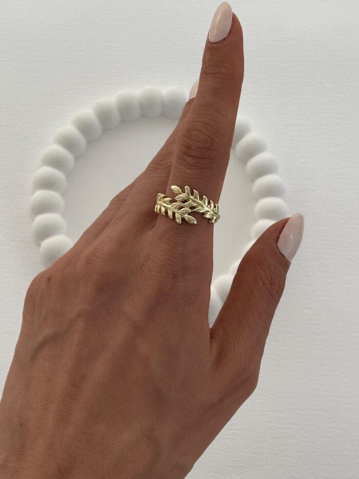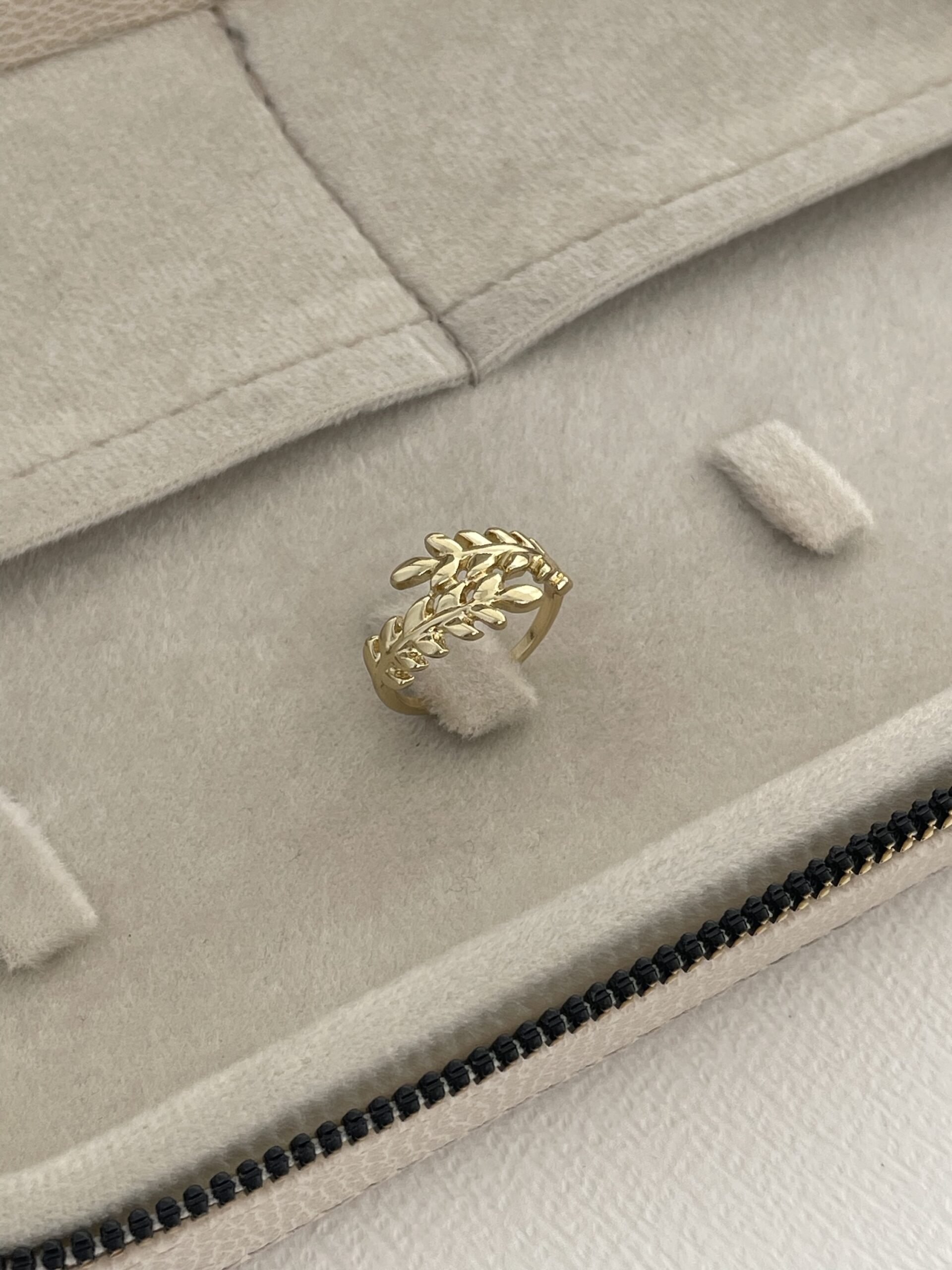 Özel Seri Yaprak Tasarım Gold Yüzük