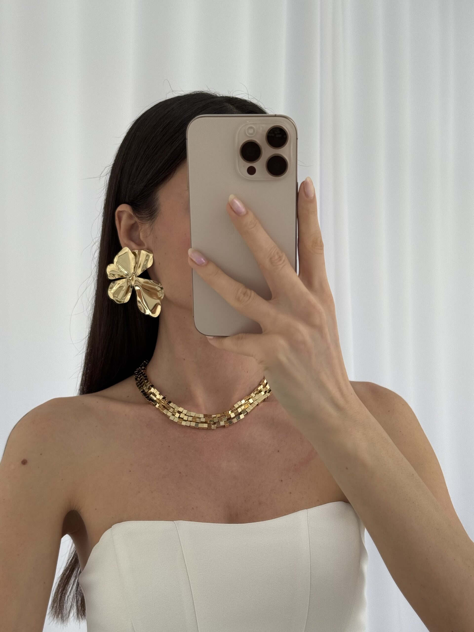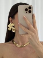 Özel Seri Yaprak Tasarım Maksi Boy Gold Küpe
