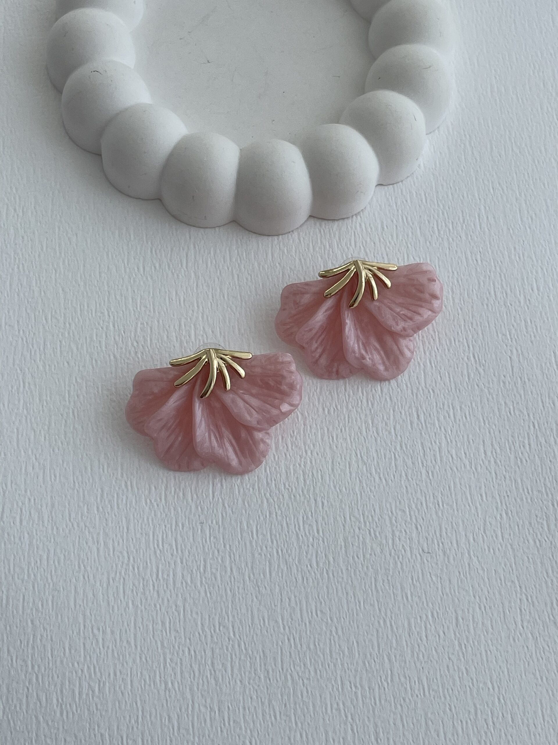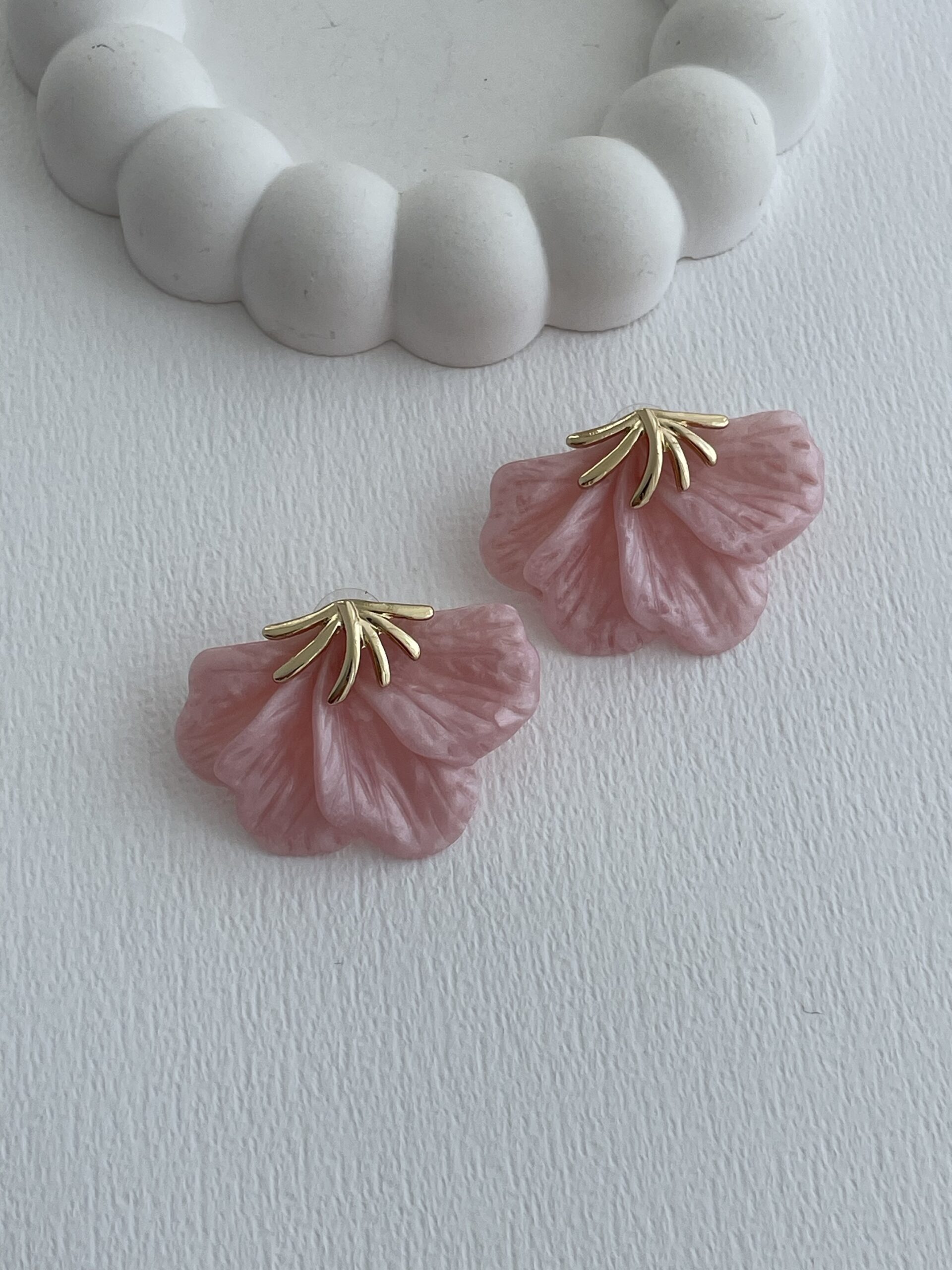 Özel Seri Yaprak Tasarım Pembe Hawai Küpe