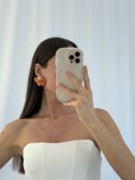 Özel Seri Yaprak Tasarım Turuncu Hawai Küpe