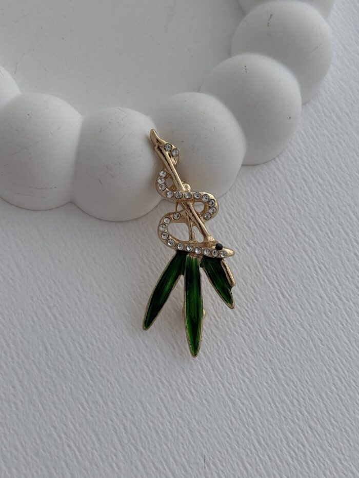 Özel Seri Yaprak & Yılan Tasarım Gold Broş