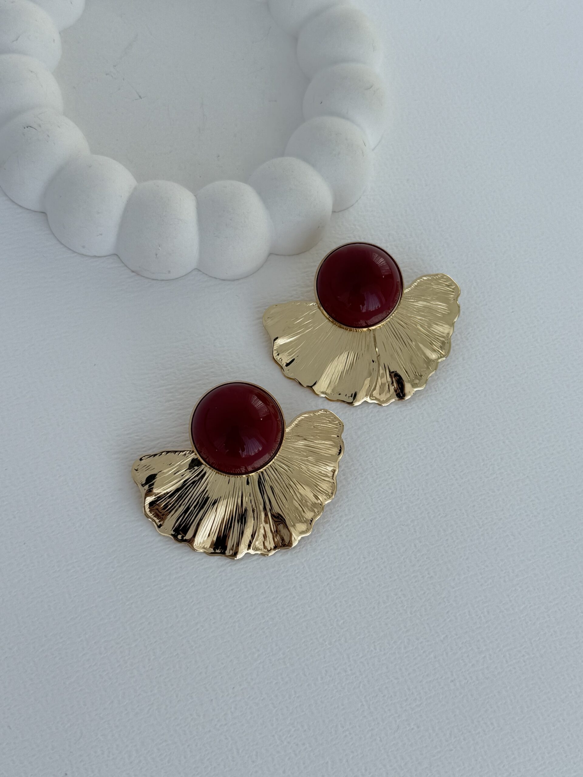 Özel Seri Yarım Çiçek Tasarım Gold Bordo Küpe