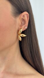 Özel Seri Yarım Çiçek Tasarım Gold Küpe