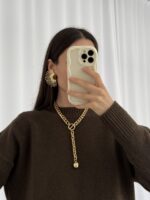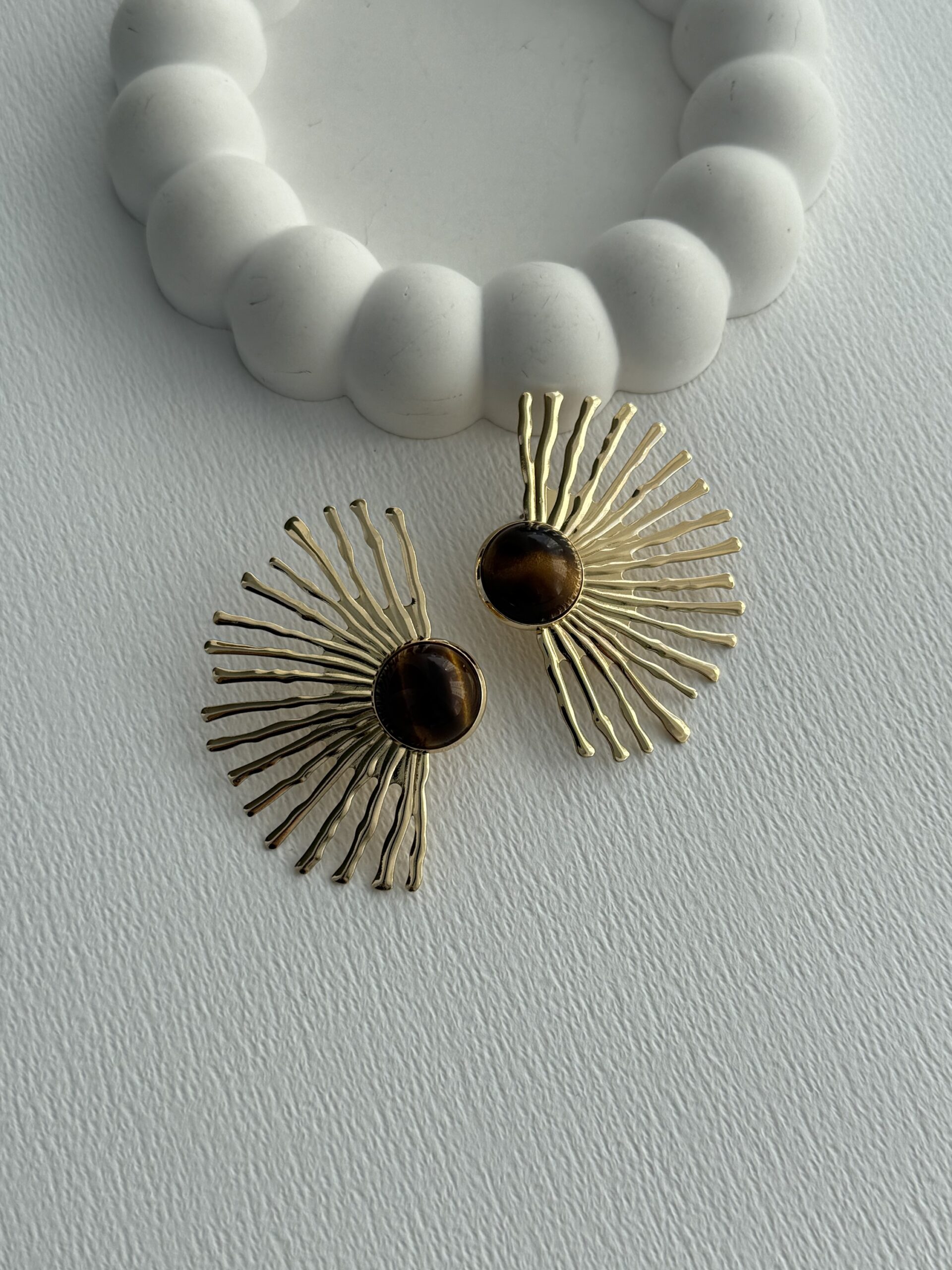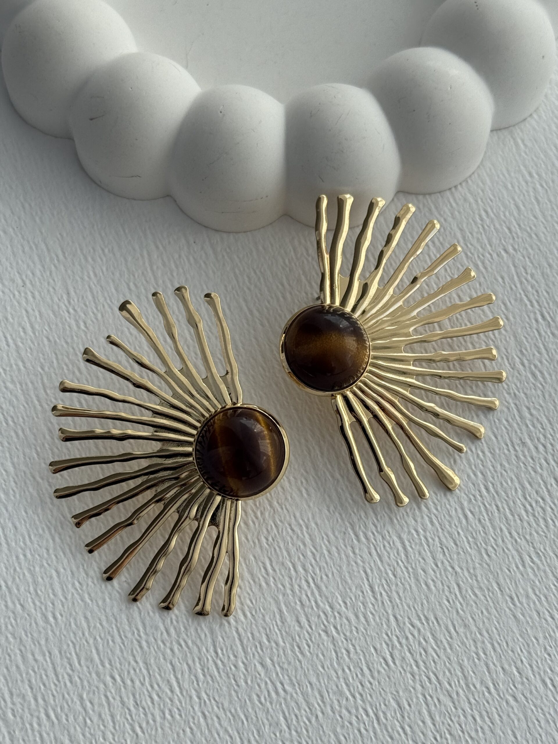 Özel Seri Yarım Güneş Tasarım Gold Kahverengi Küpe