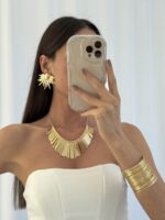 Özel Seri Yarım Güneş Tasarım Gold Küpe