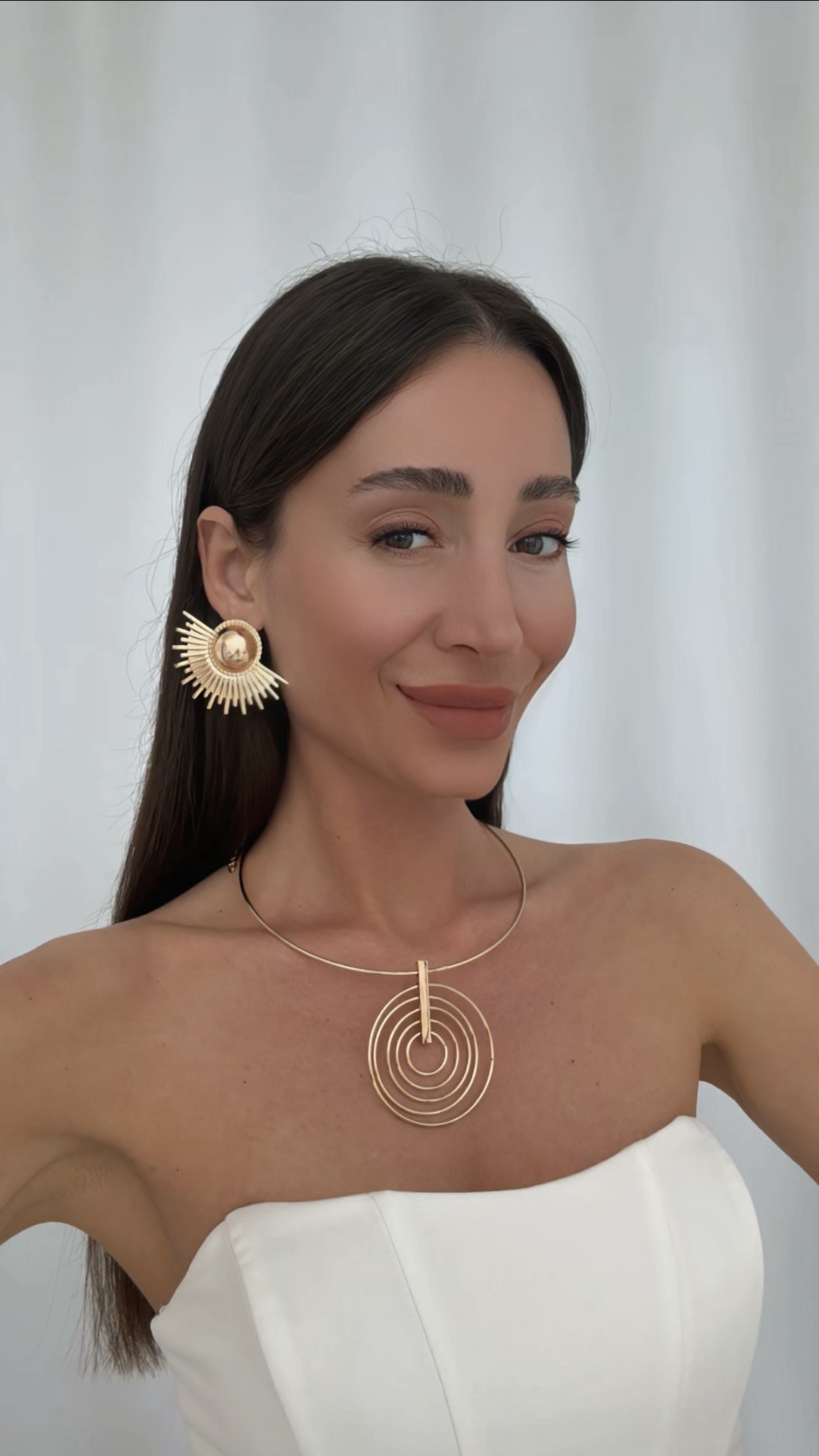Özel Seri Yarım Güneş Tasarım Gold Küpe