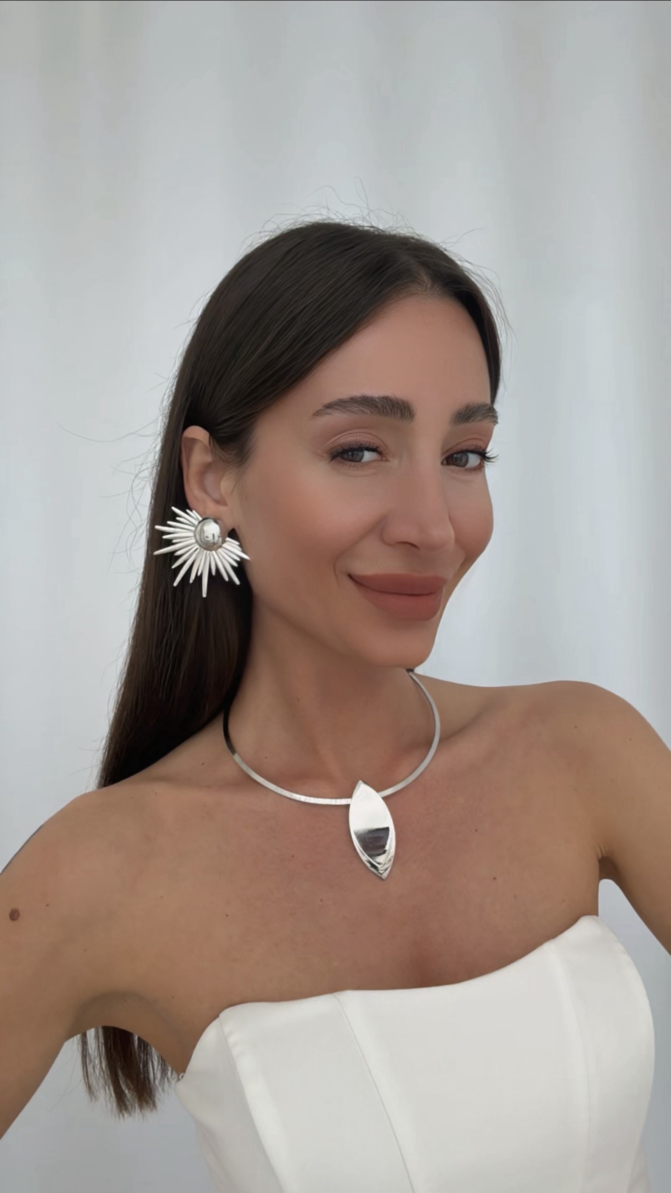 Özel Seri Yarım Güneş Tasarım Gümüş Küpe
