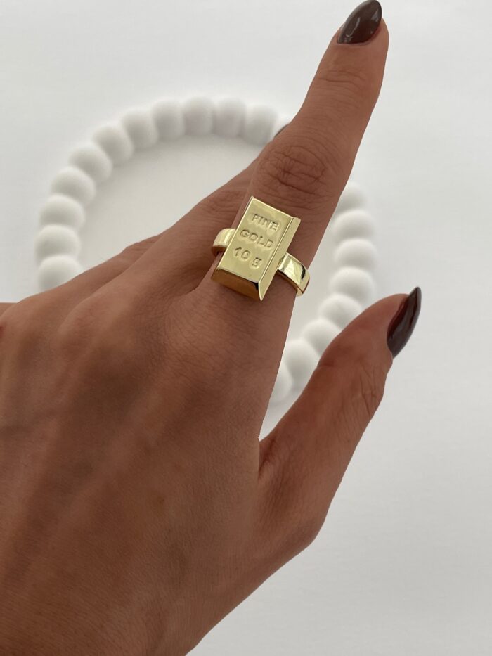 Özel Seri Yazılı Külçe Altın Tasarım Gold Ayarlanabilir Yüzük