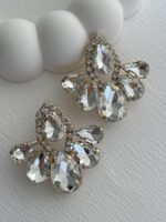 Özel Seri Yelpaze Motif Damla Taş Gold Küpe