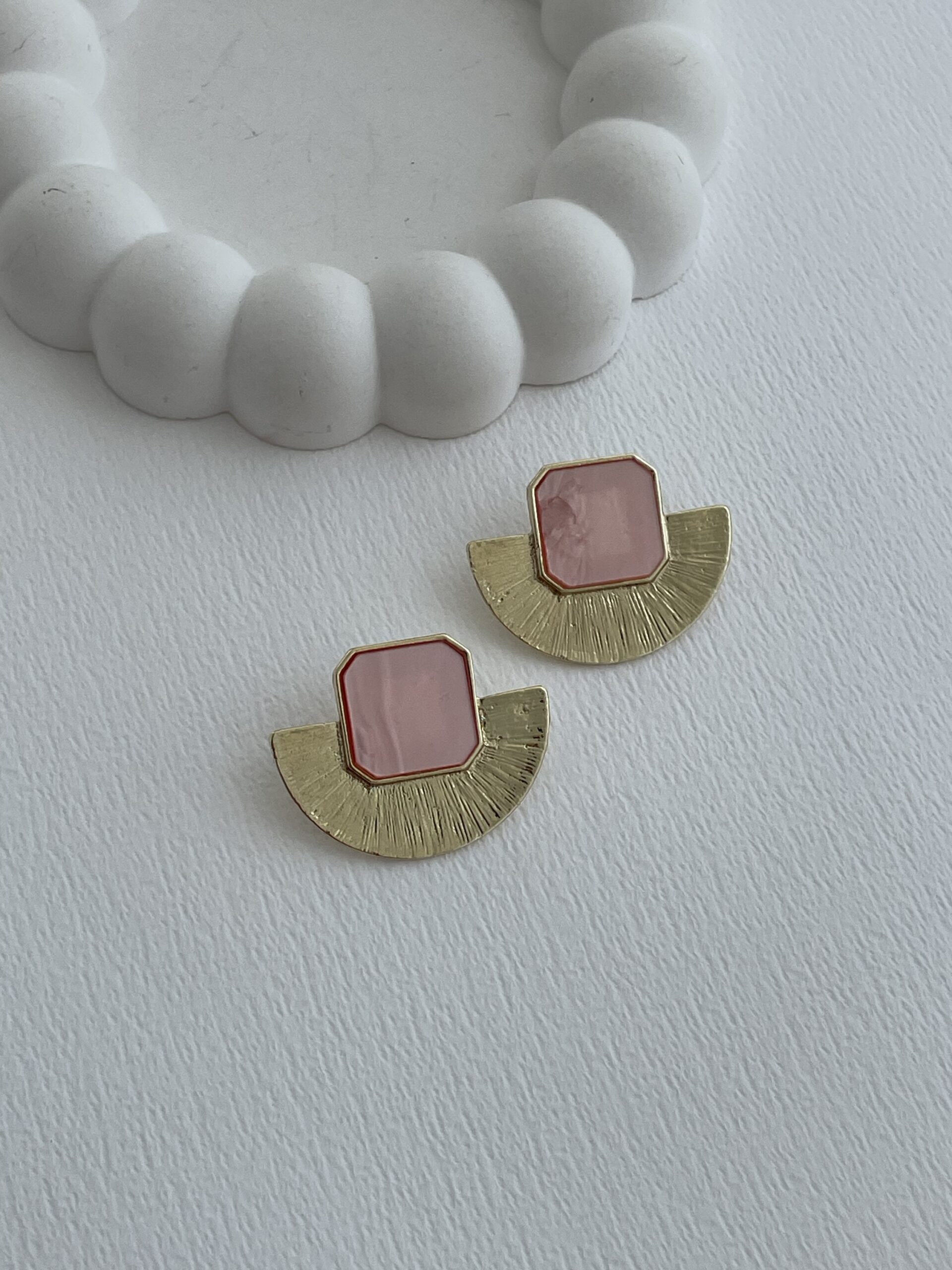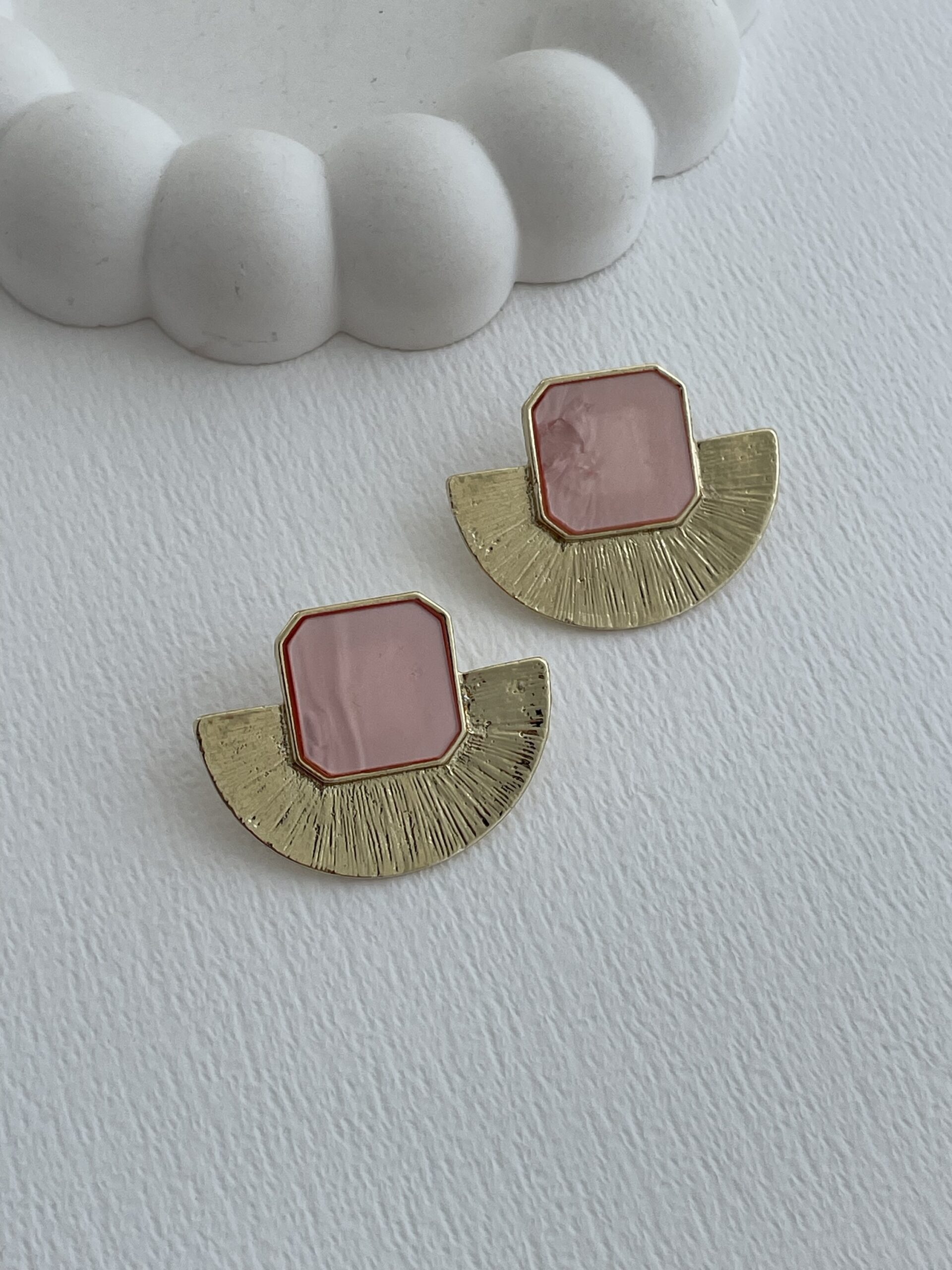 Özel Seri Yelpaze Tasarım Pembe Hawai Küpe