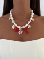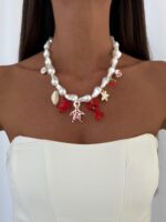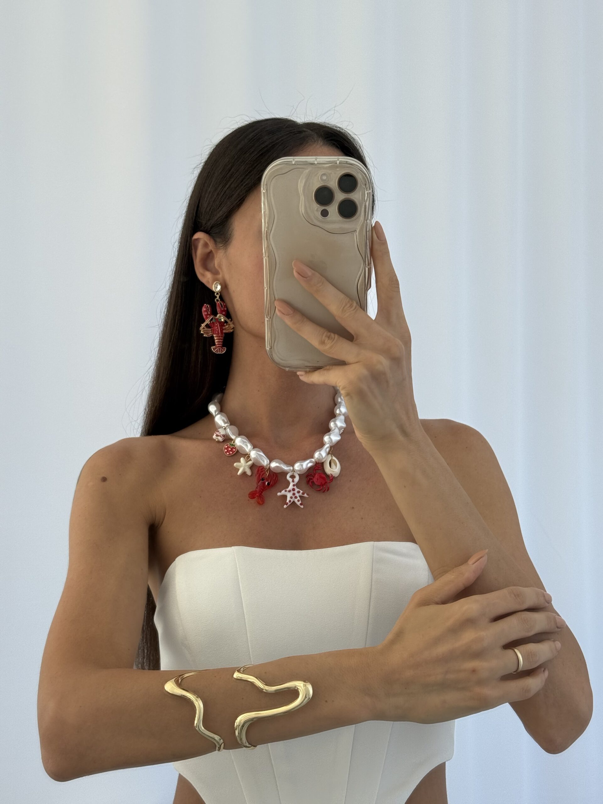 Özel Seri Yengeç Charm Büyük Barok İnci Gold Kolye