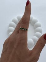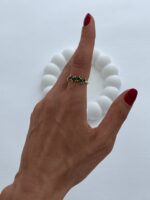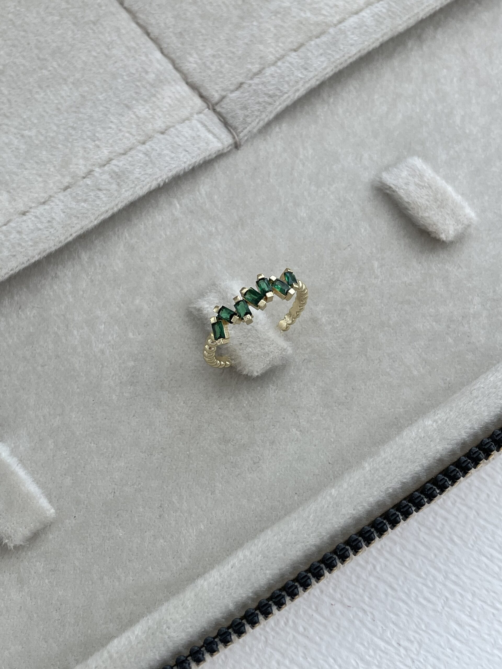 Özel Seri Yeşil Baget Taş Zikzak Gold Ayarlanabilir Yüzük
