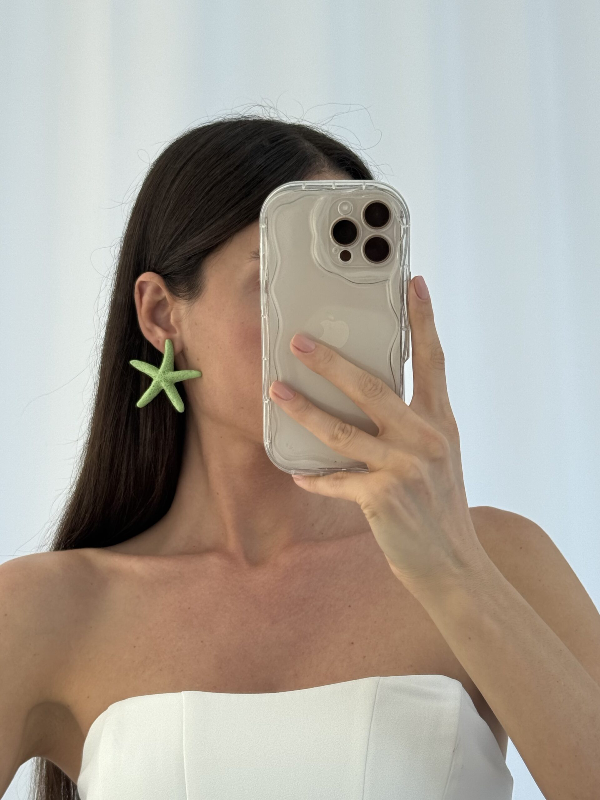 Özel Seri Fıstık Yeşili Dokulu Deniz Yıldızı Küpe