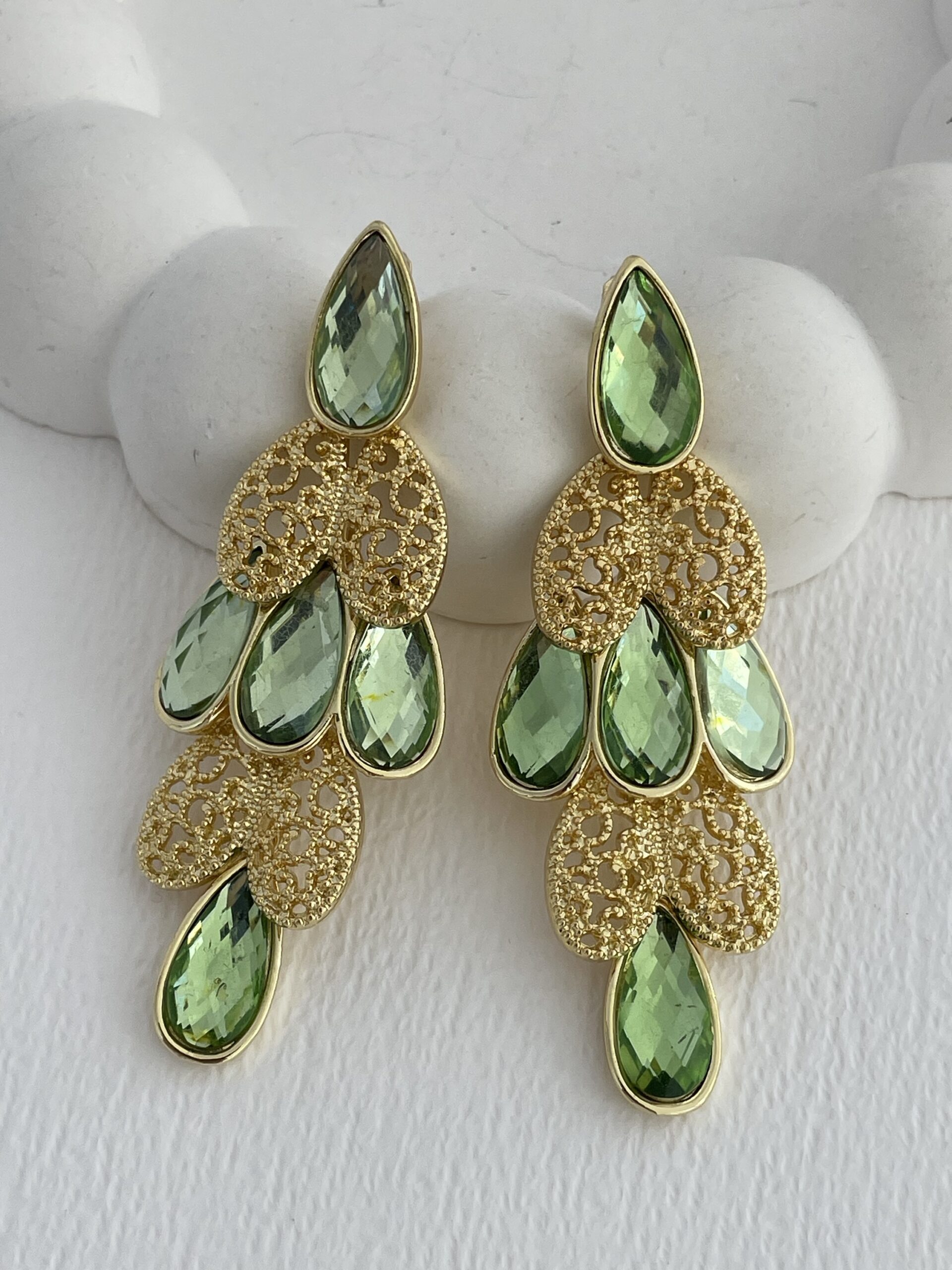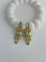 Özel Seri Yeşil Taş Yaprak Tasarım Gold Küpe