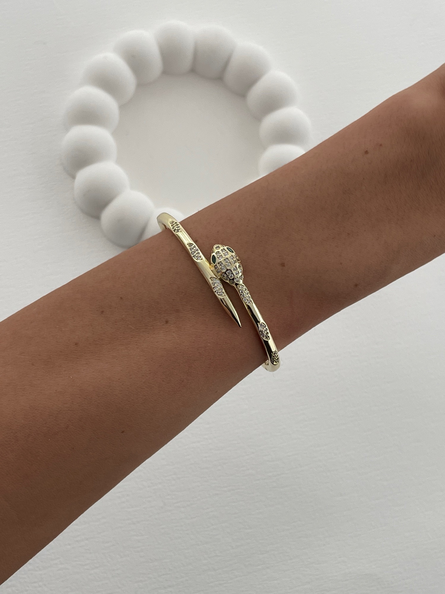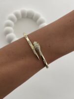 Özel Seri Yeşil Zirkon Taş Detay Yılan Model Gold Kelepçe Bileklik