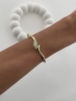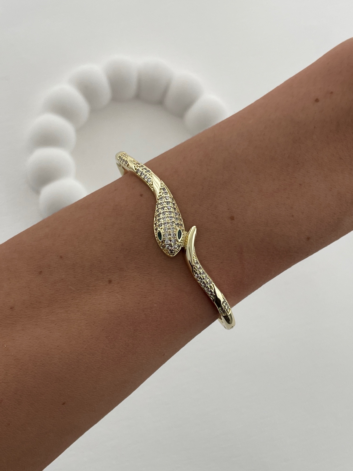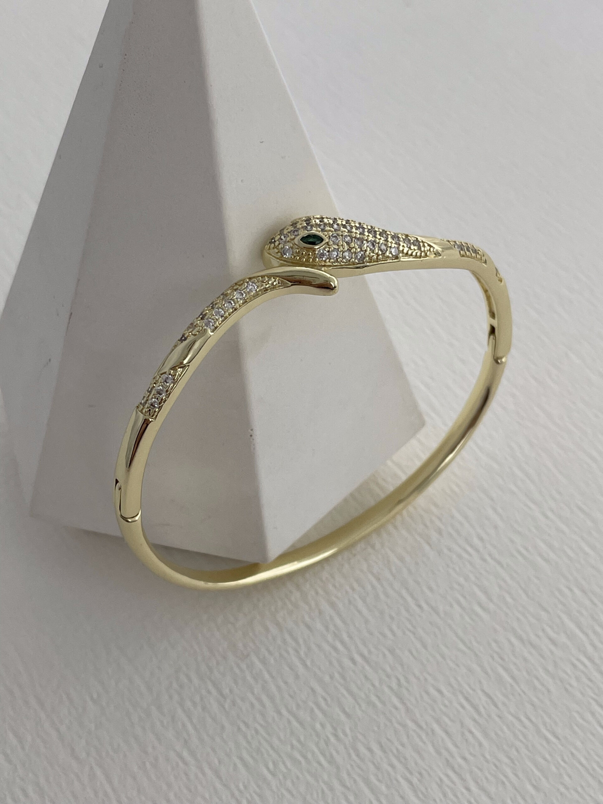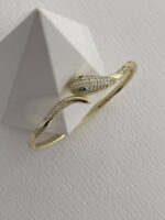 Özel Seri Yeşil Zirkon Taş Detay Yılan Model Gold Kelepçe Bileklik