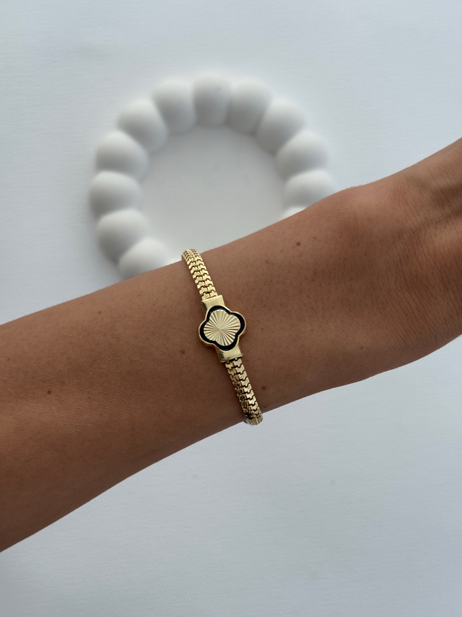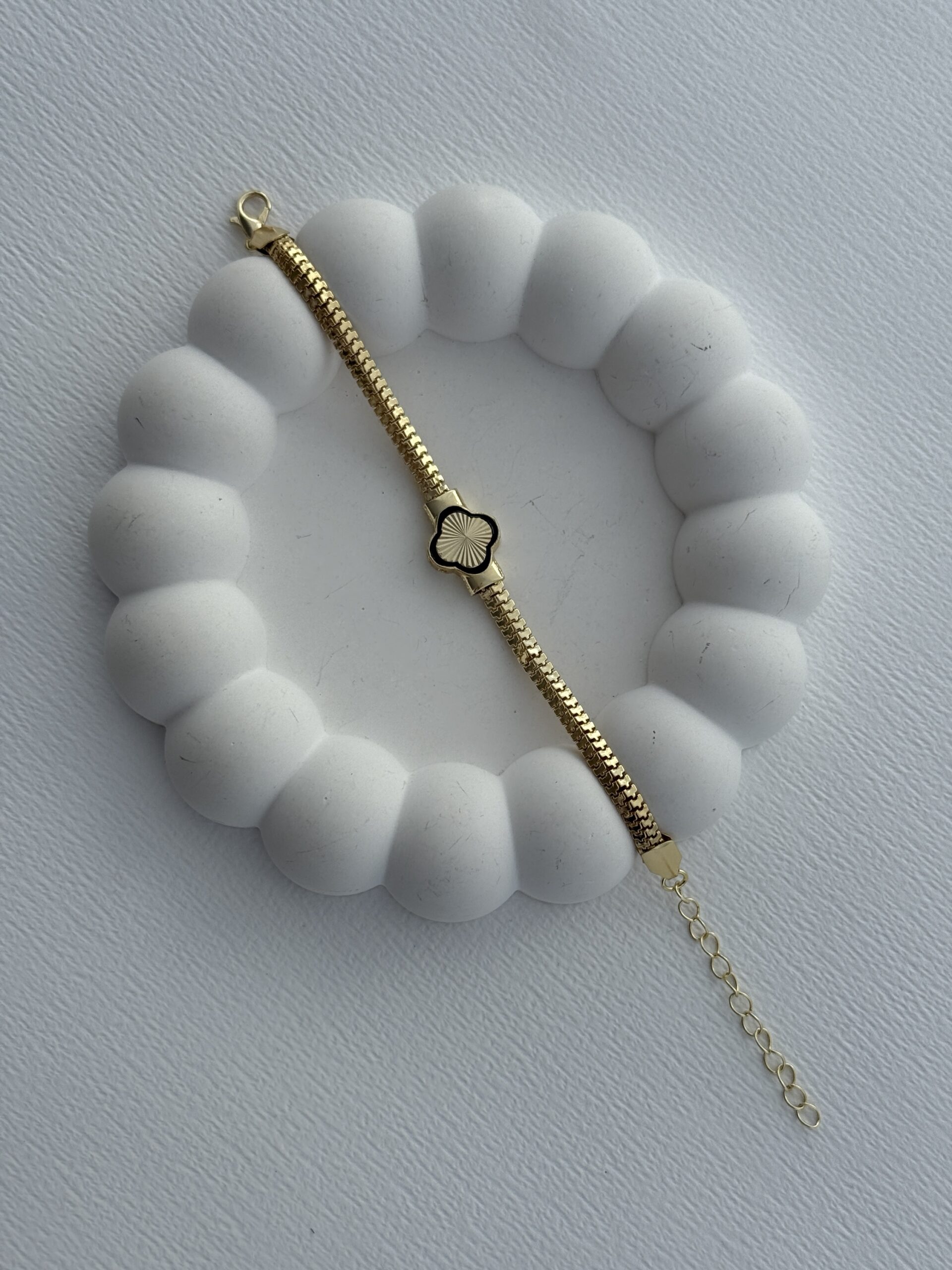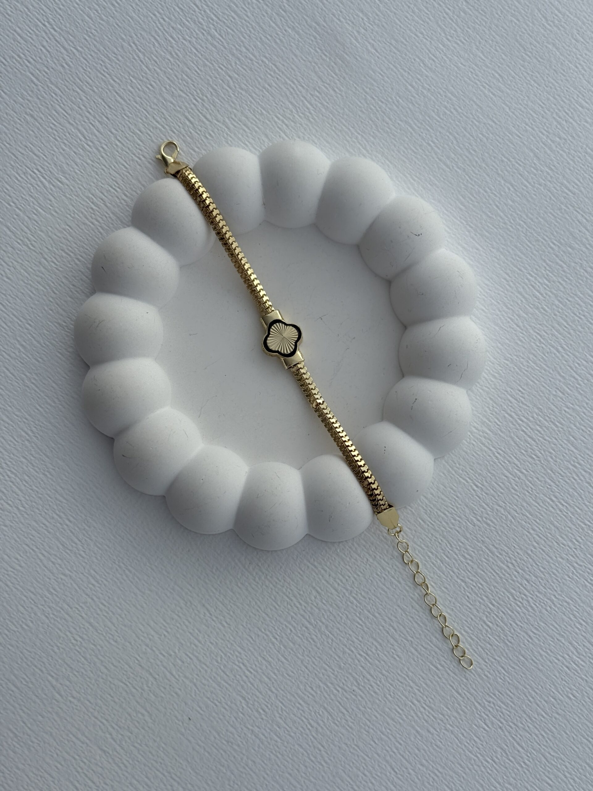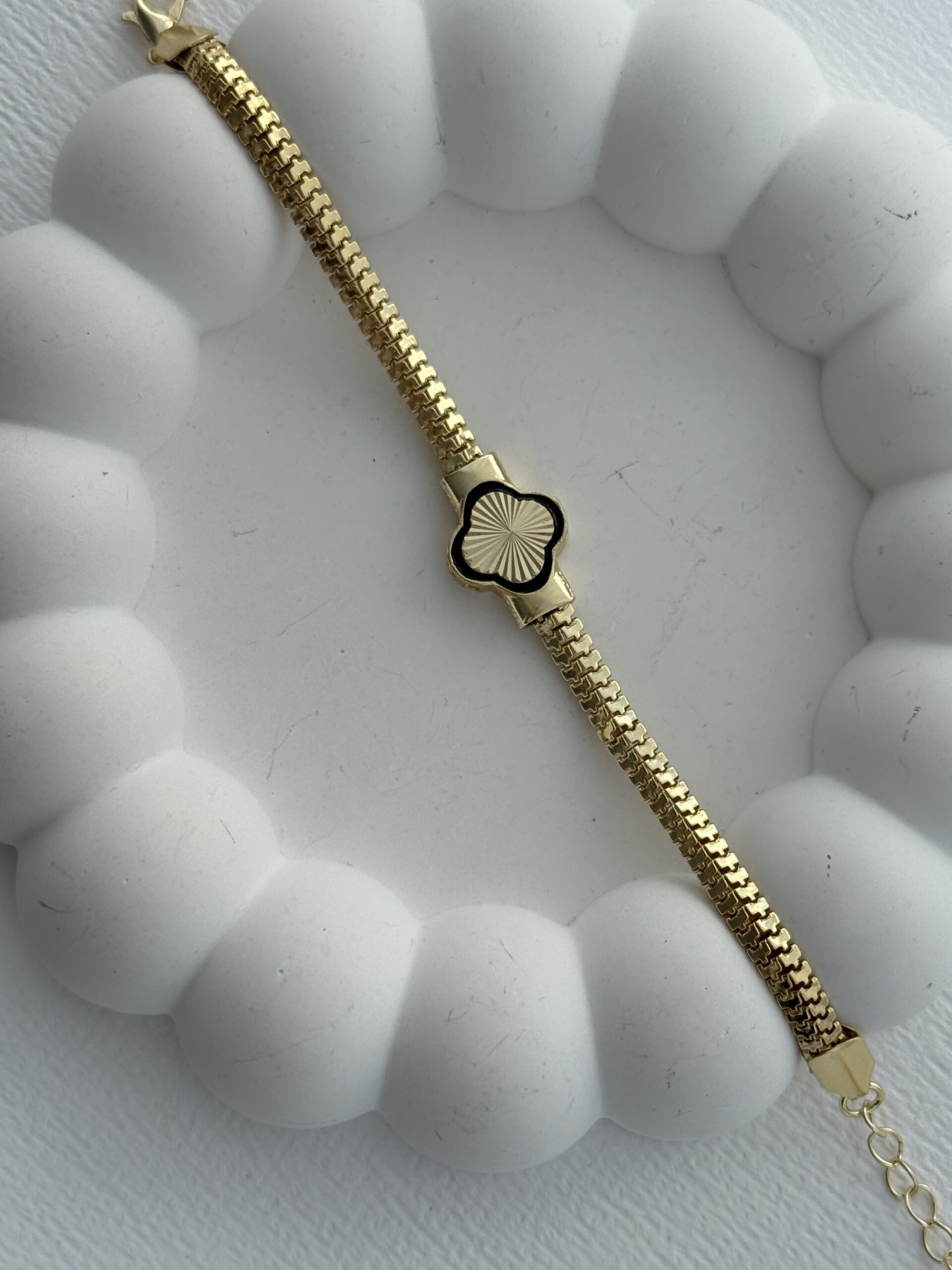 Özel Seri Yılan Sırtı Zincir Yonca Tasarım Gold Bileklik