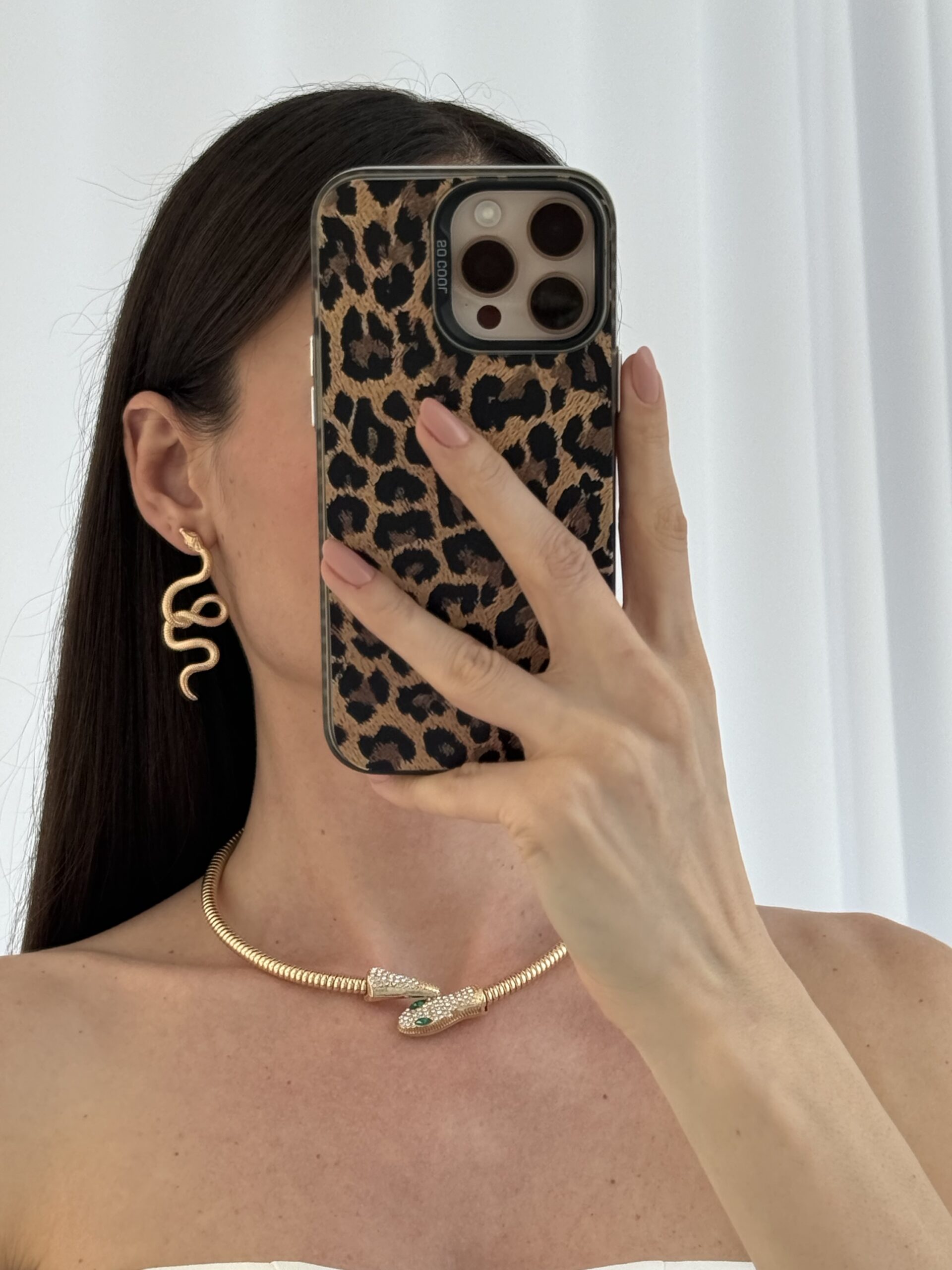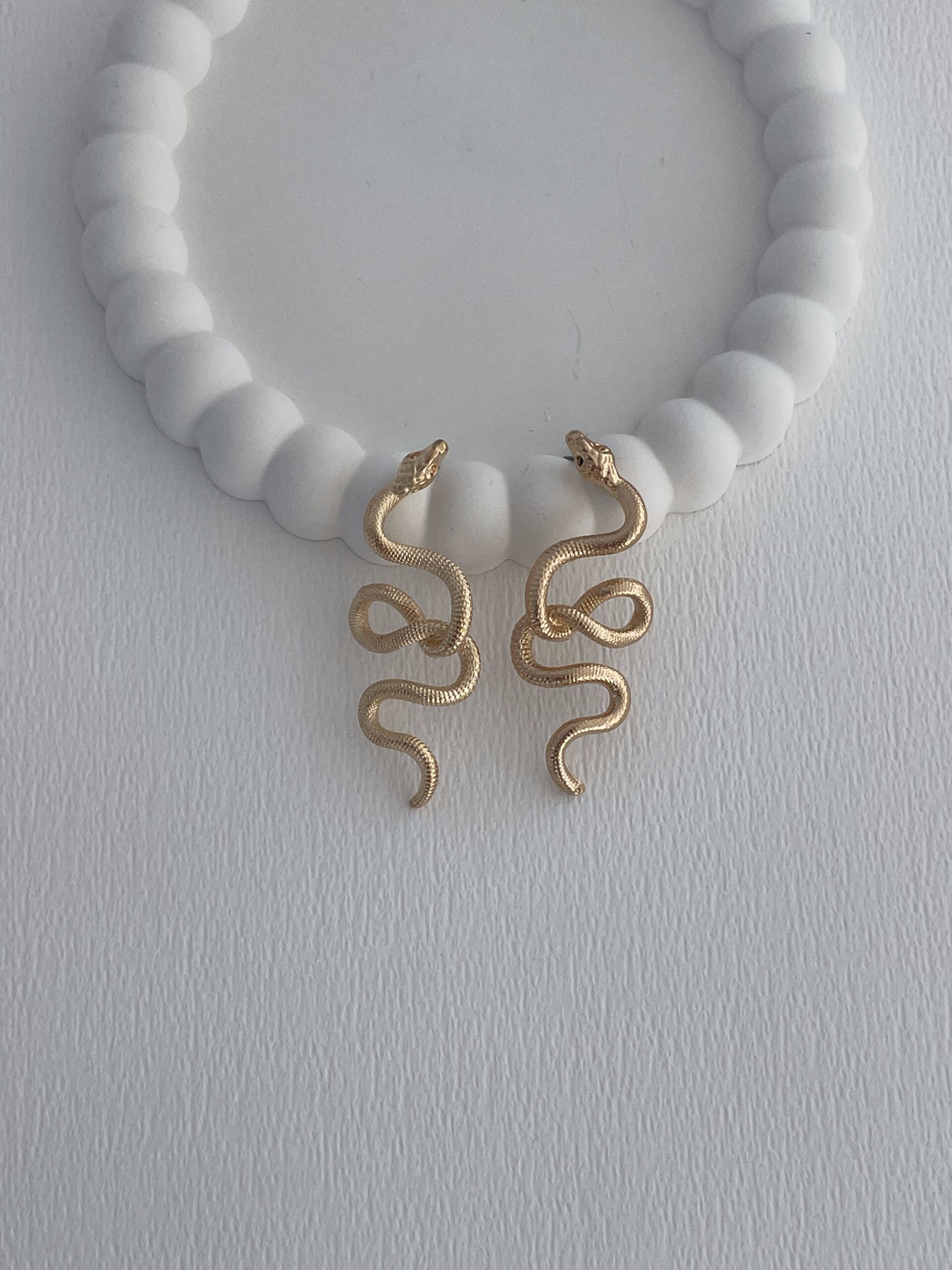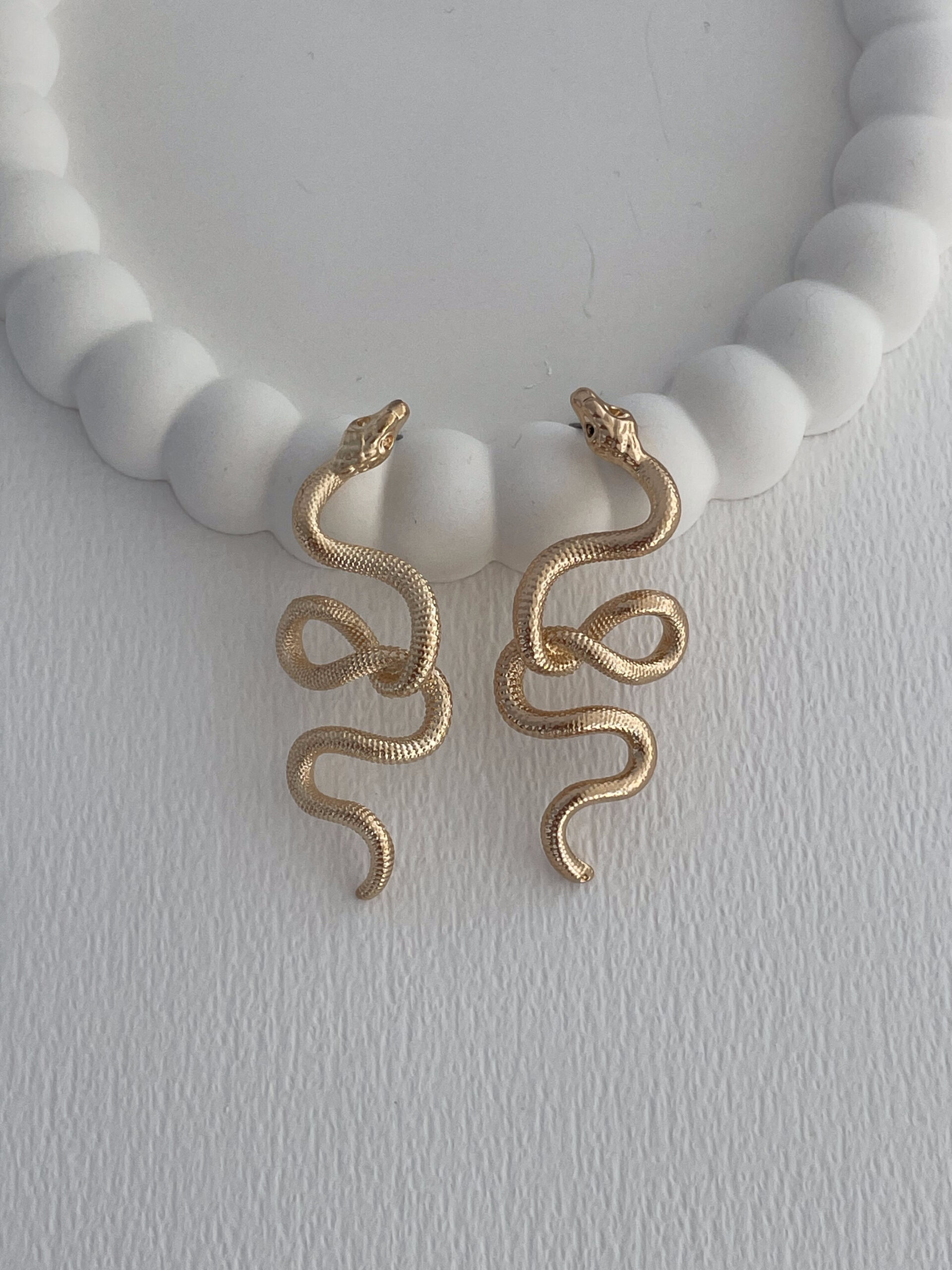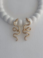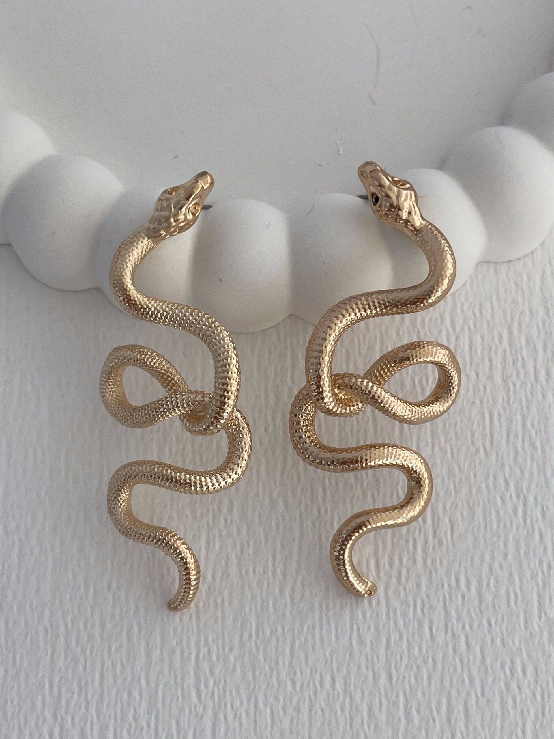 Özel Seri Yılan Tasarım Gold Maksi Boy Küpe