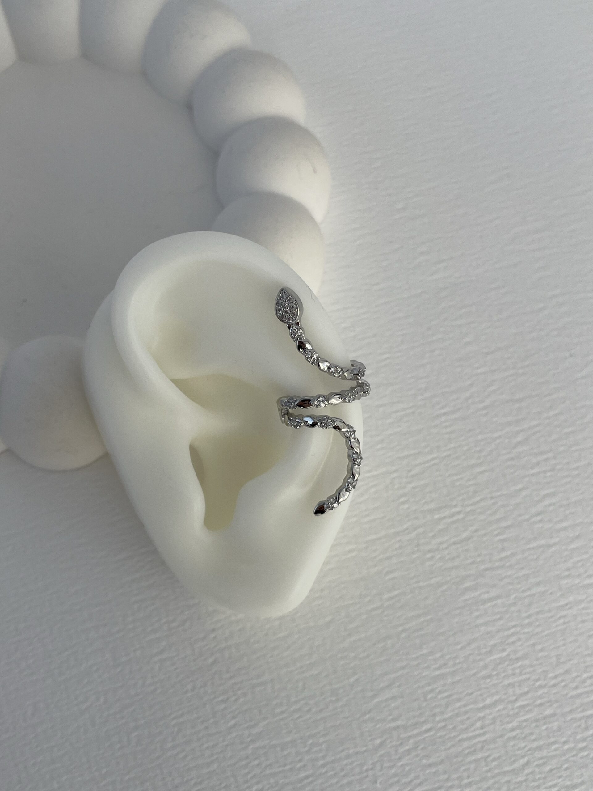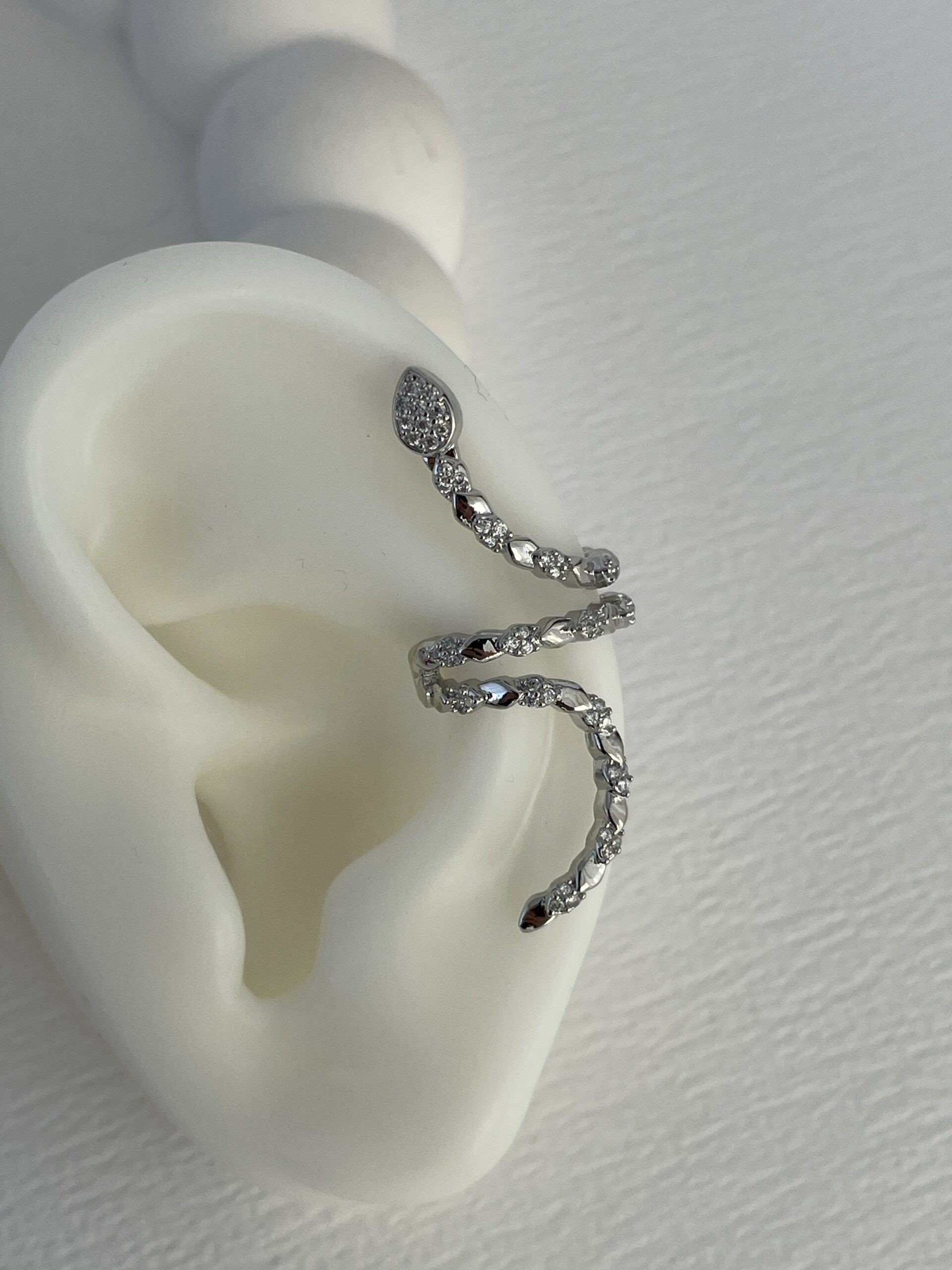 Özel Seri Yılan Tasarım Zirkon Taş Gümüş Earcuff