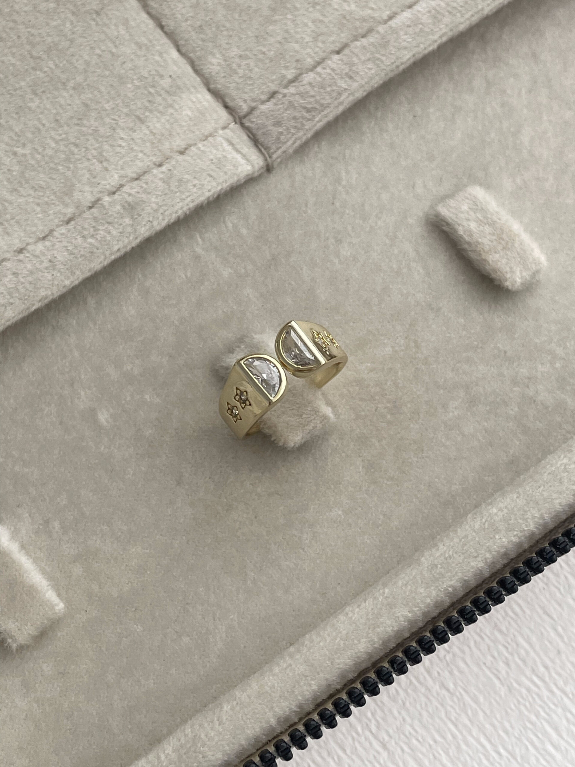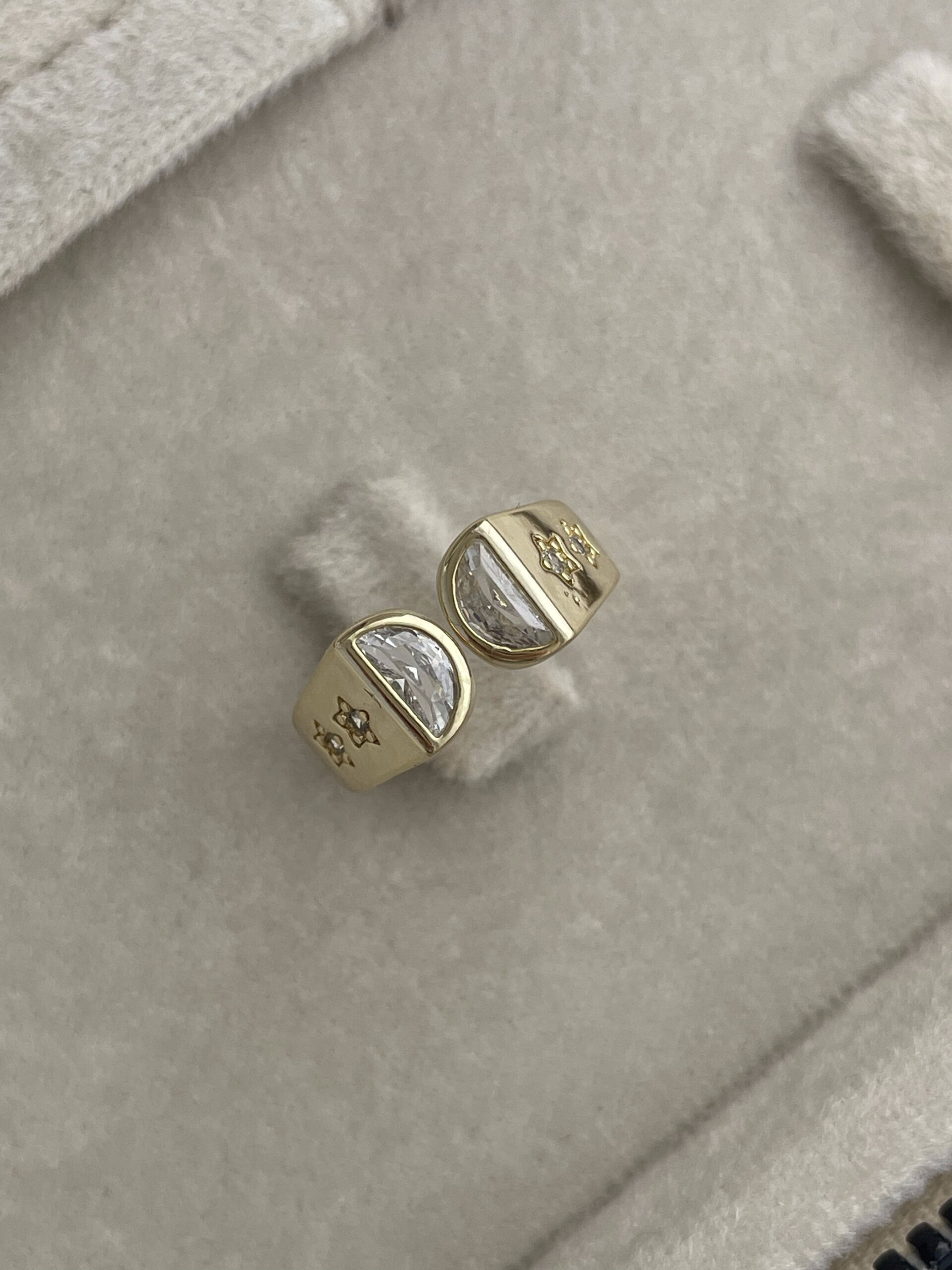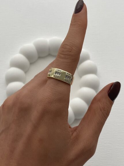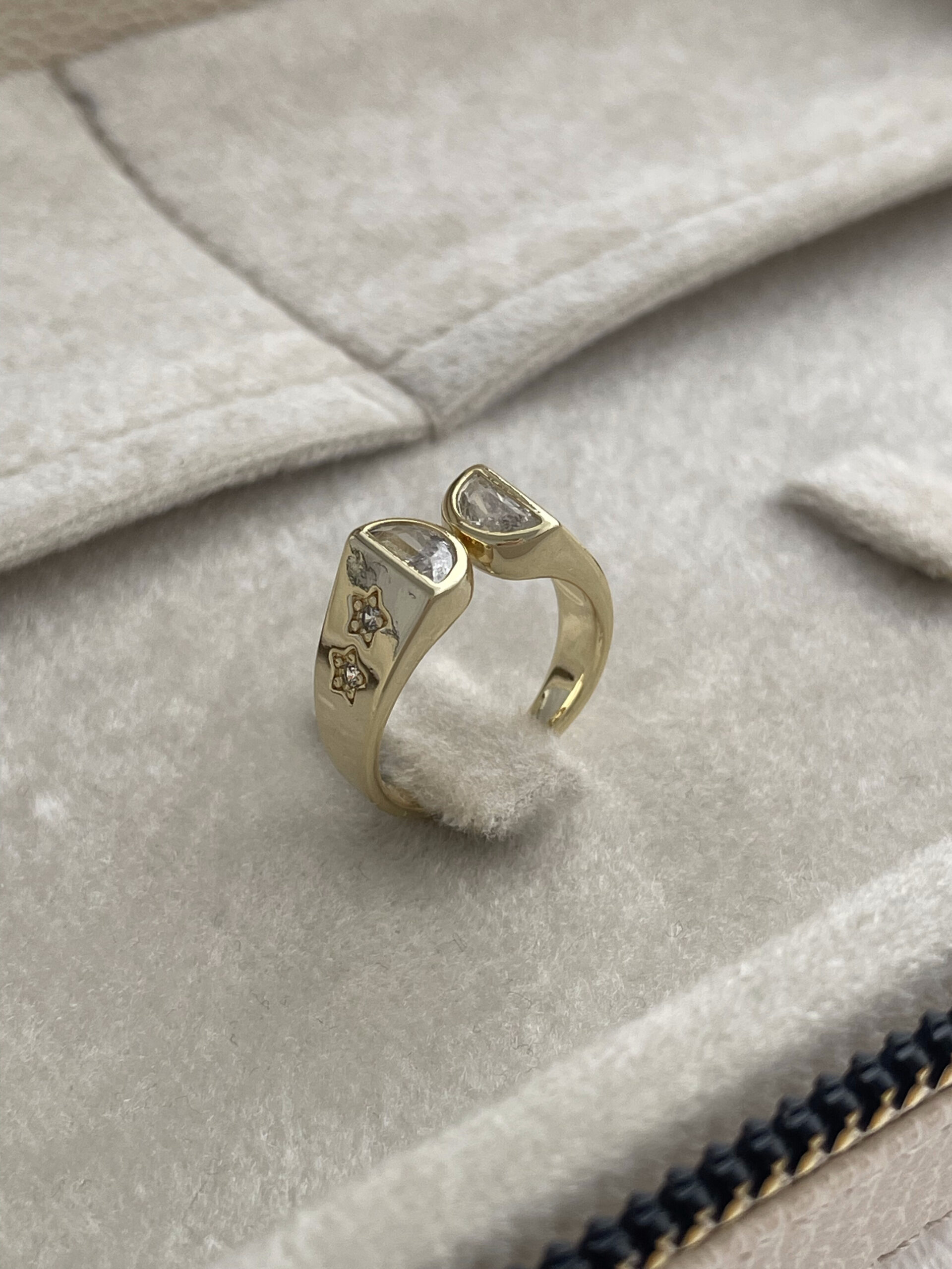Özel Seri Yıldız Detay Baget Taşlı Ayarlanabilir Gold Yüzük