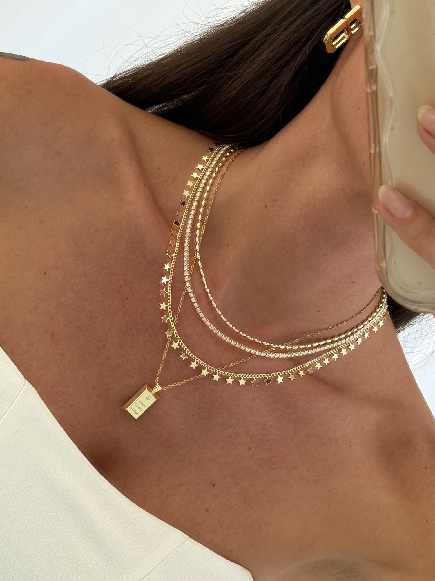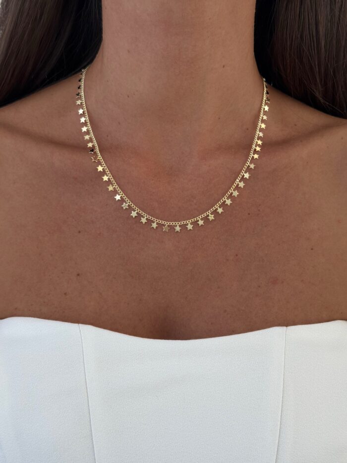 Özel Seri Yıldız Pul Tasarım Gold Zincir Kolye