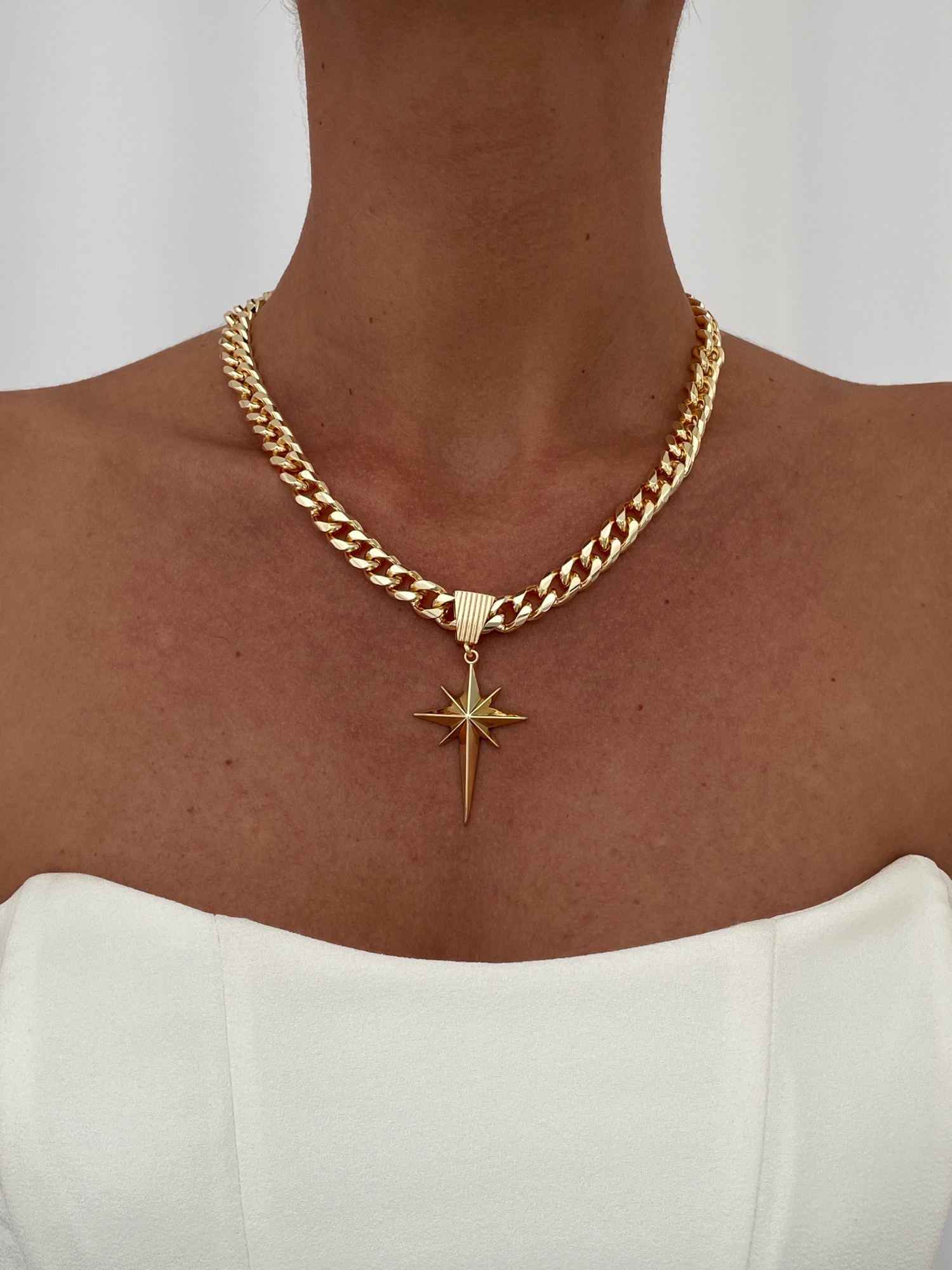 Özel Seri Yıldız Tasarım Gold Gurmet Zincir Kolye