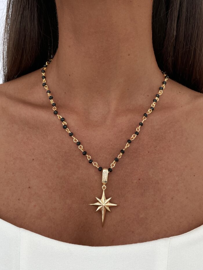 Özel Seri Yıldız Tasarım Gold & Siyah Top Zincir Kolye