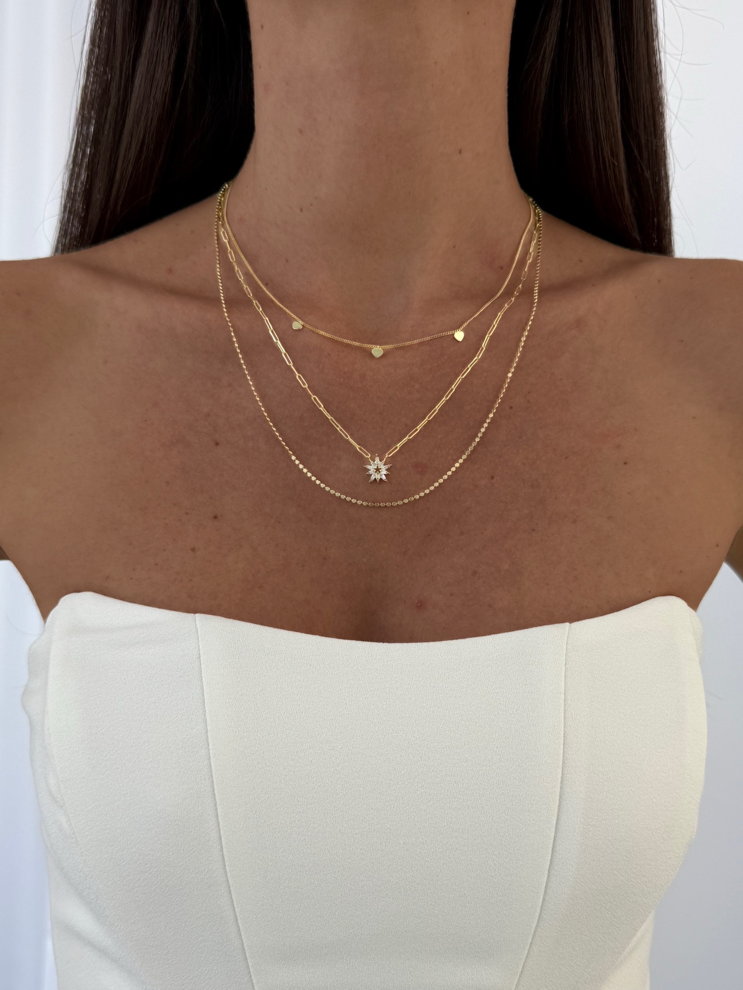 Özel Seri Yıldız Tasarım Üçlü Zincir Gold Kolye