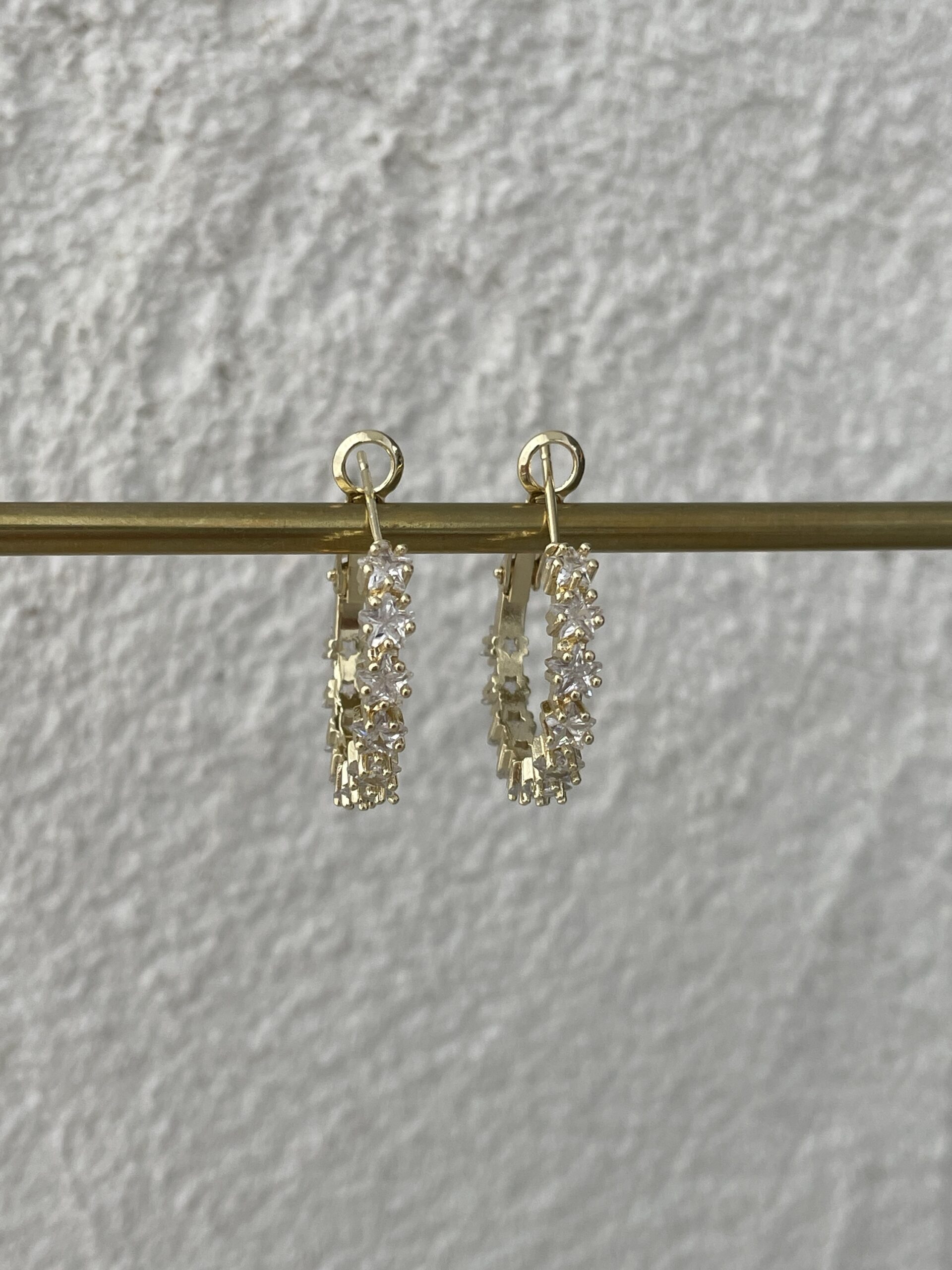 Özel Seri Yıldız Tek Taş Tasarım Gold Halka Küpe