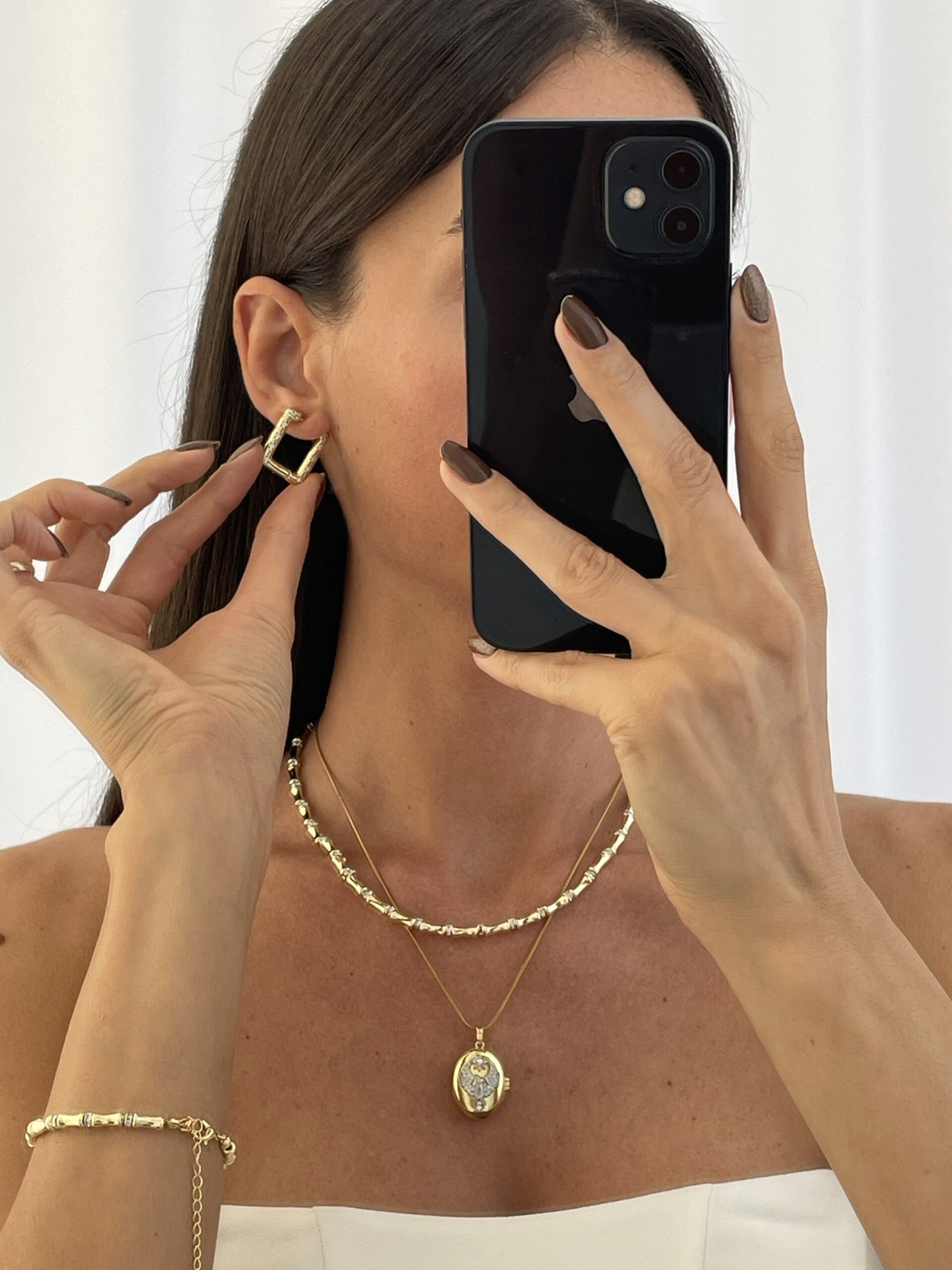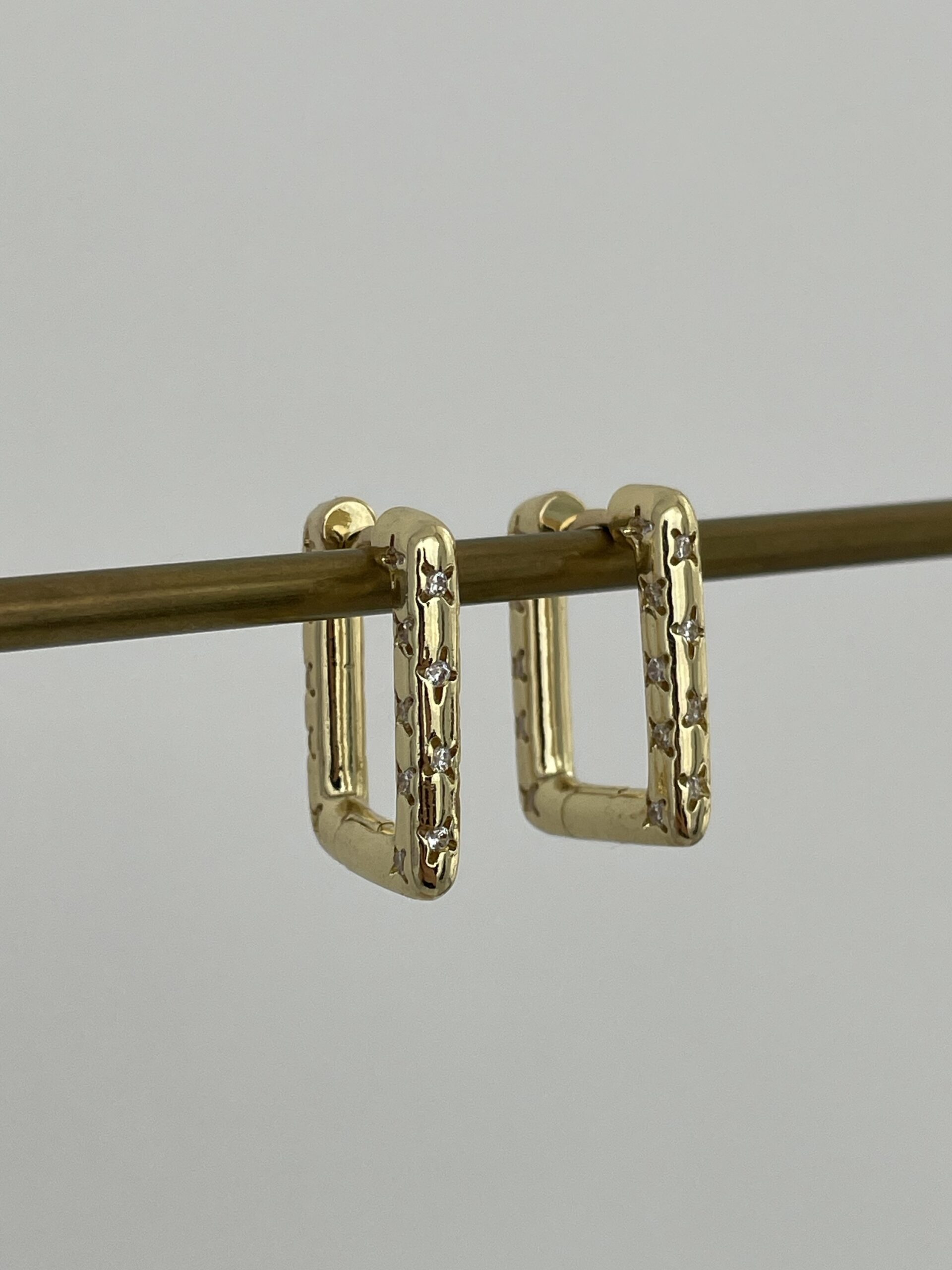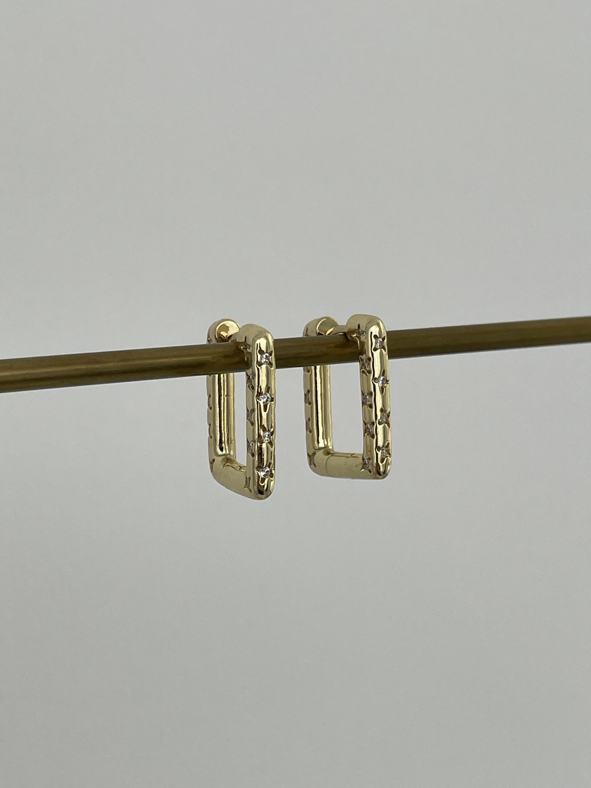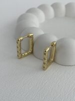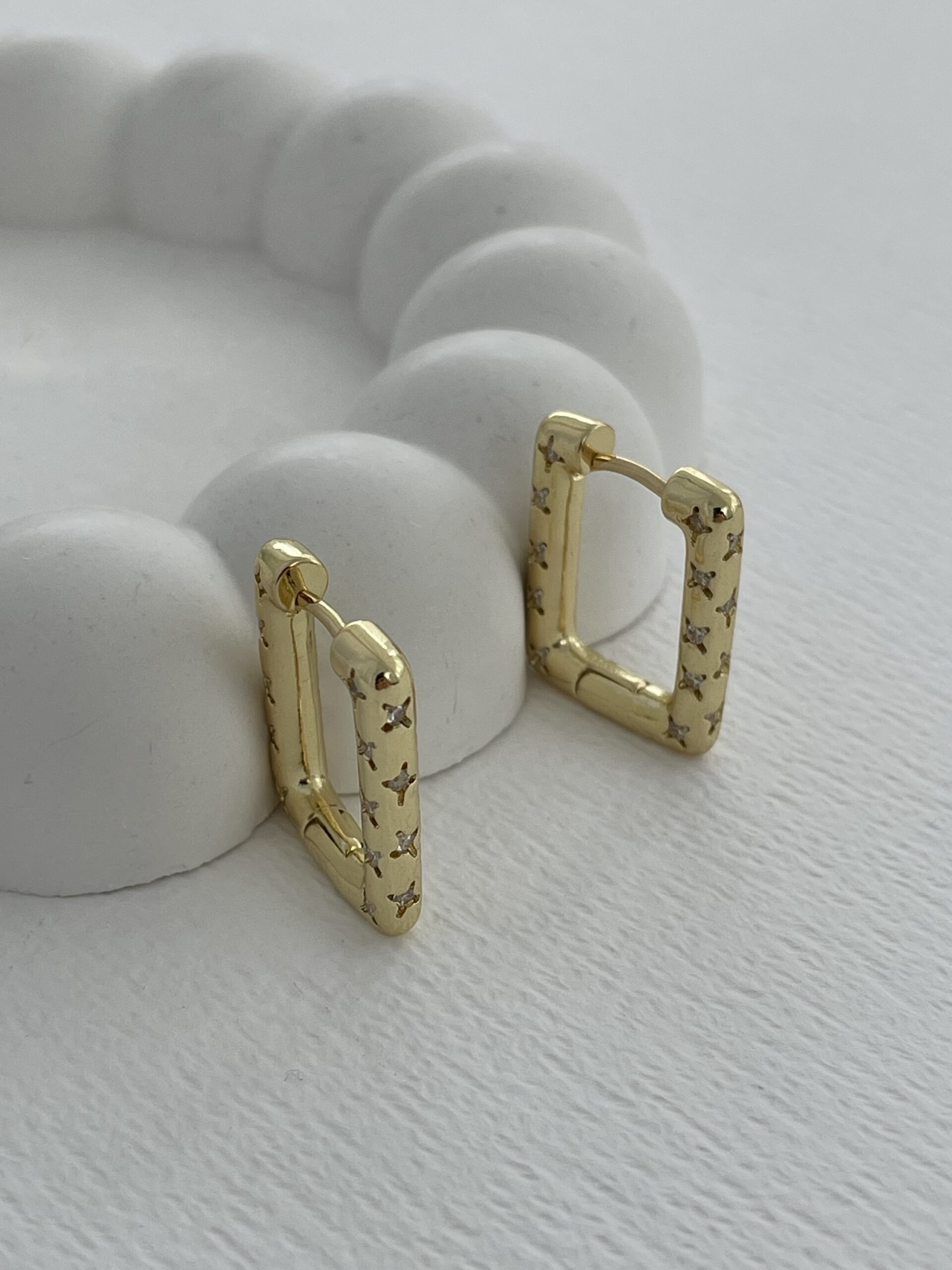 Özel Seri Yıldız Zirkon Taşlı Kare Gold Küpe