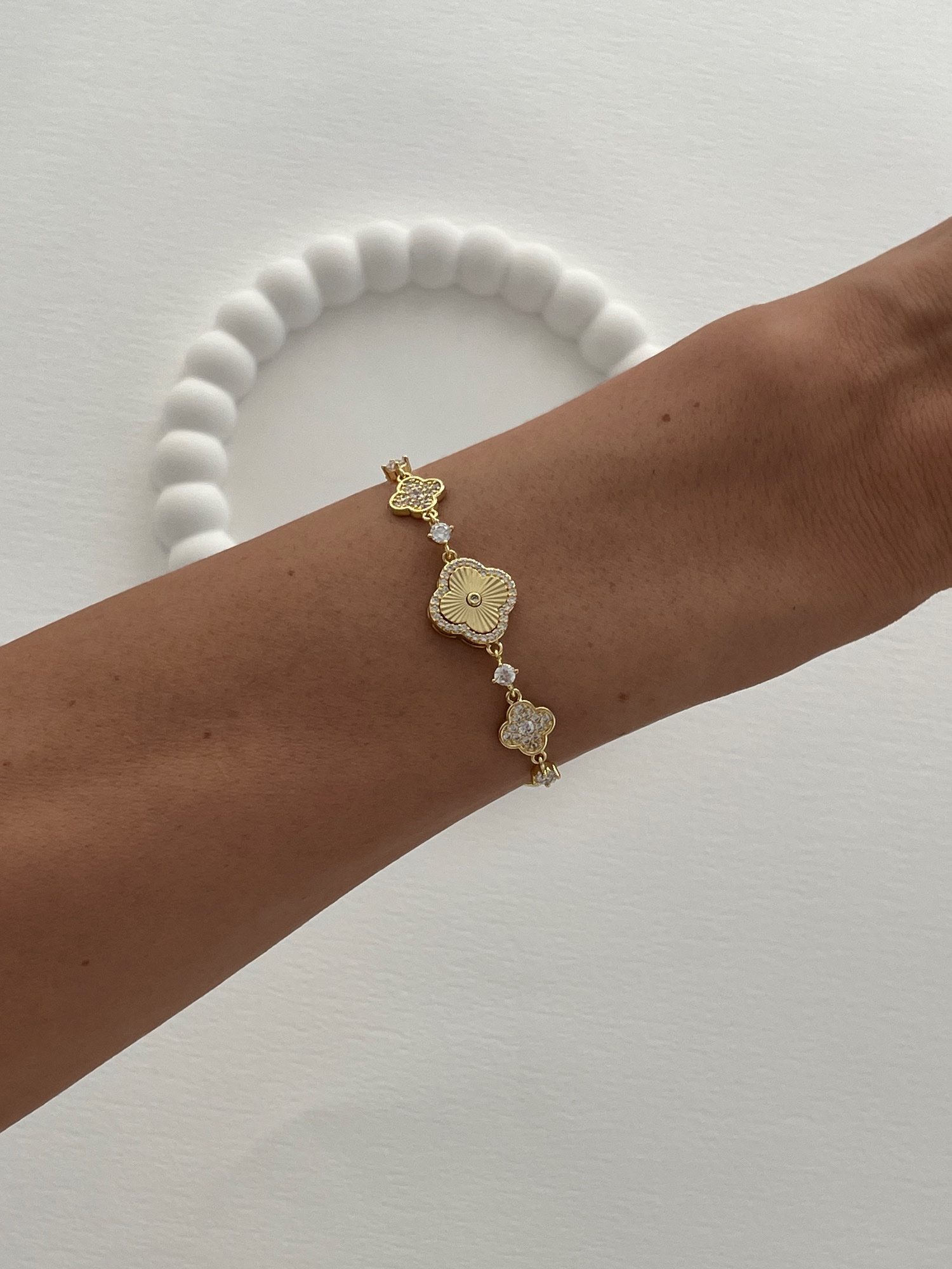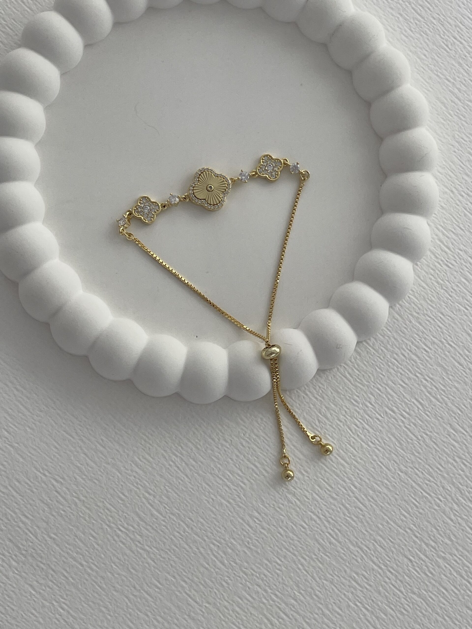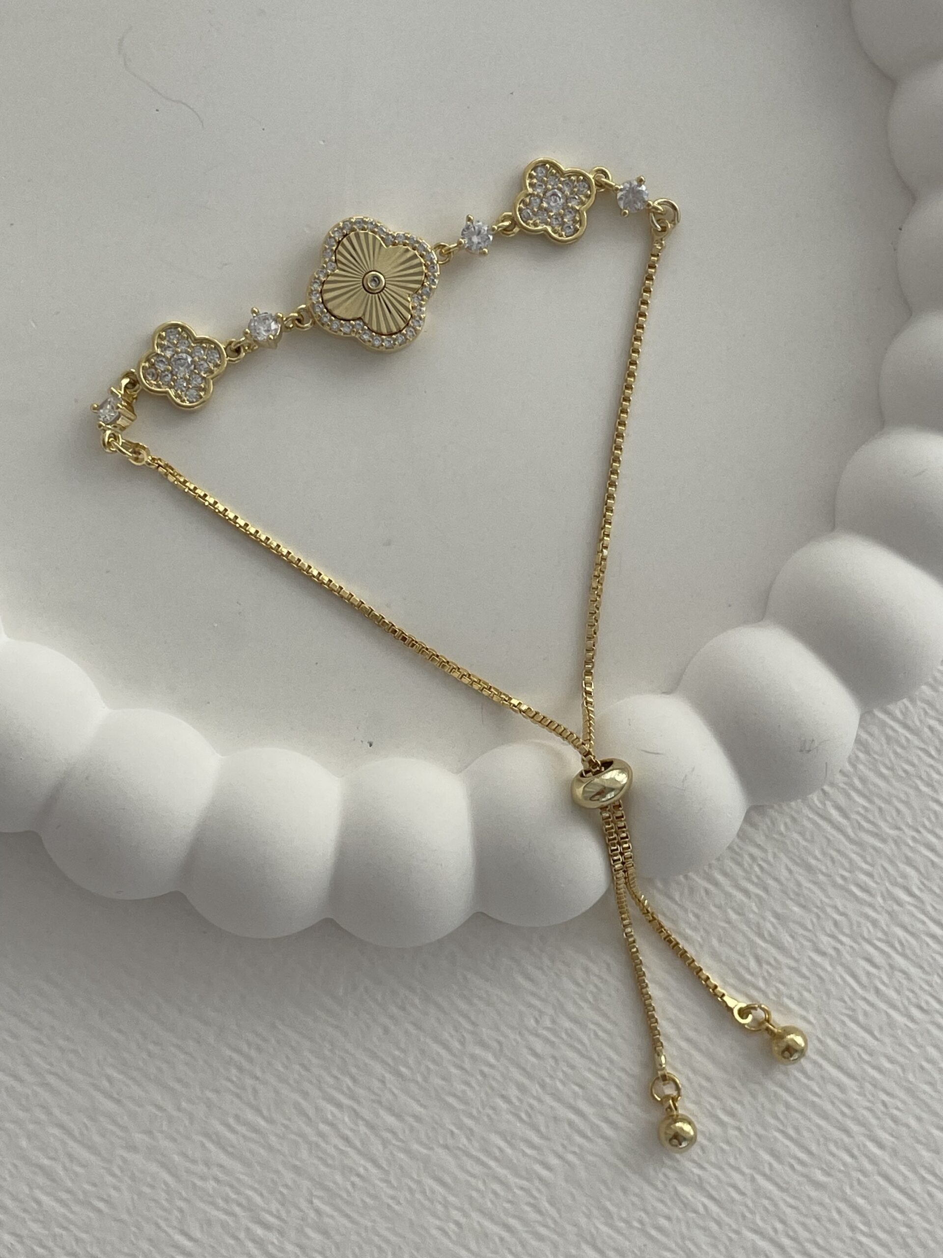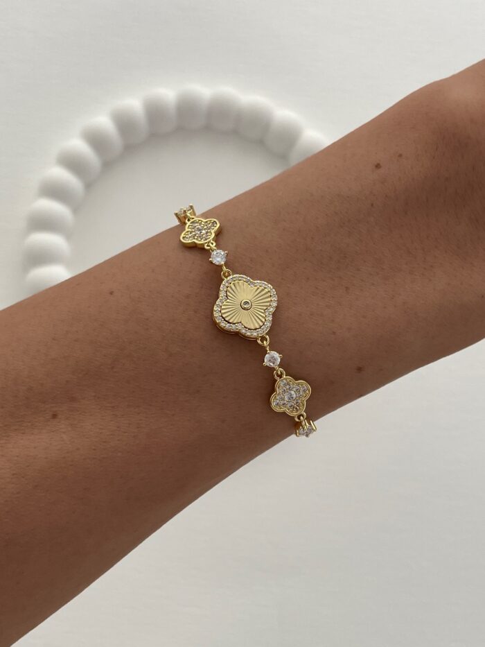 Özel Seri Yonca Marka Model Zirkon Taşlı Gold Asansörlü Bileklik
