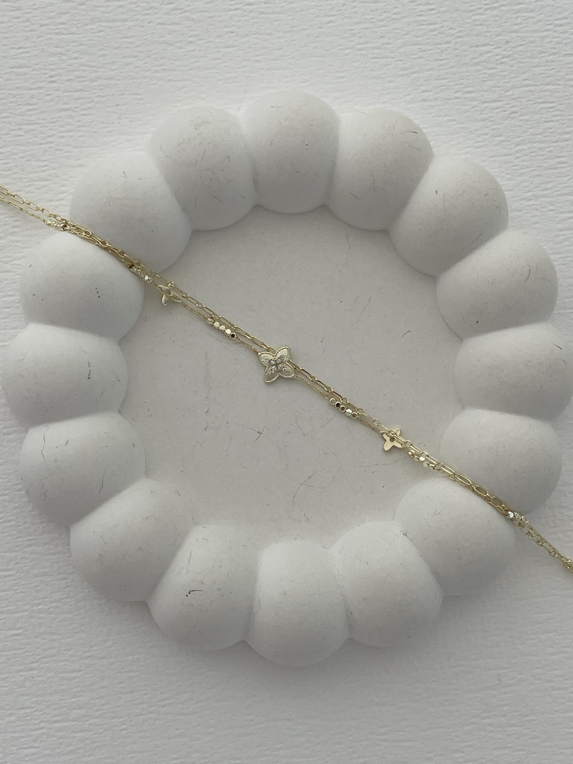 Özel Seri Yonca Tasarım Gold İkili Zincir Halhal